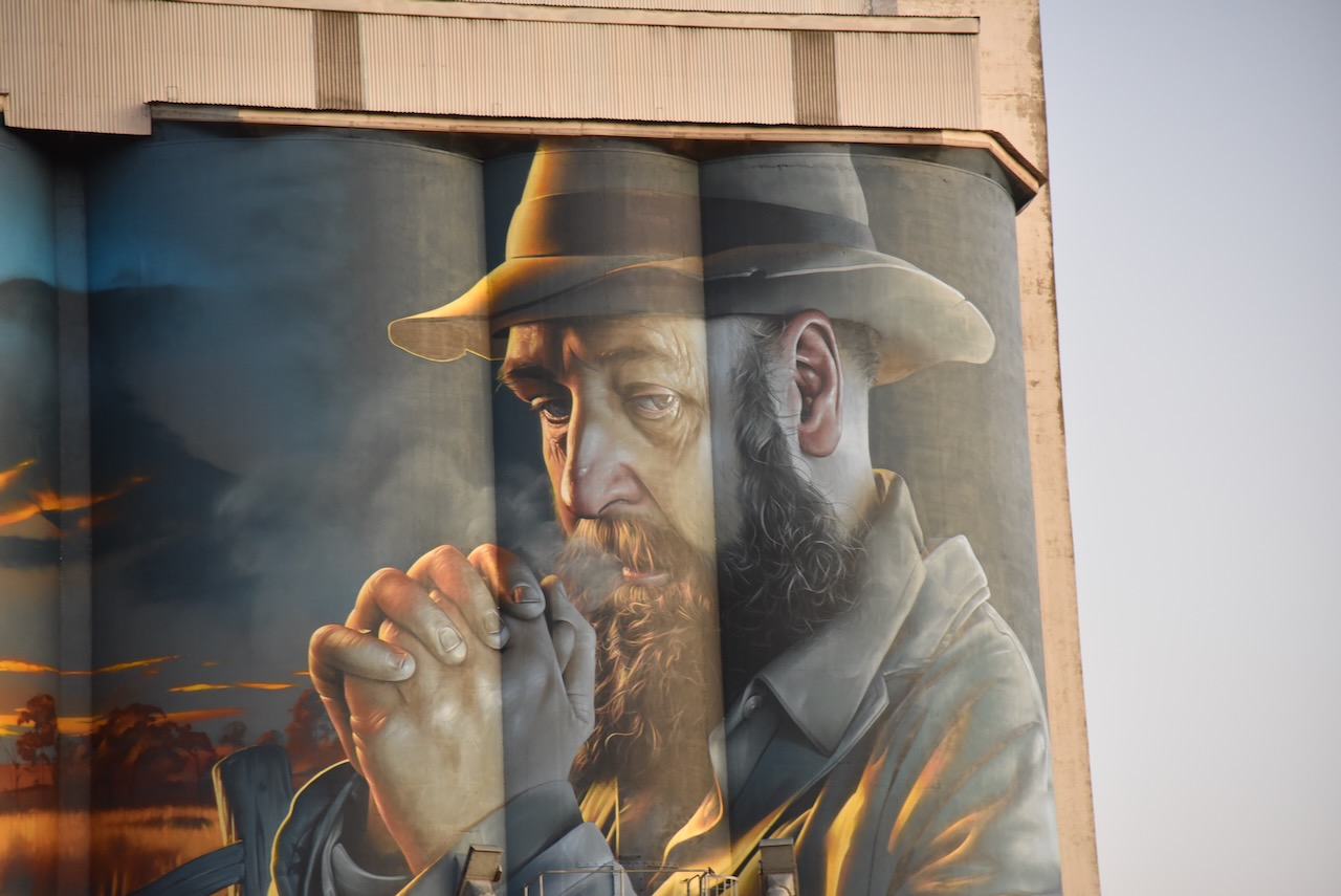 I then stopped briefly to have a look at the Lameroo silo. Unfortunately, I was running short of time and decided not to activate the silo for the Silos On the Air (SiOTA) program. The silo was completed in April 2024. I had been through Lameroo numerous times before but this was prior to the silo art being completed. The silo art features a Mallee farmer and a windmill. The artist was ‘Smug’ Sam Bates. (Silo Art 2024)