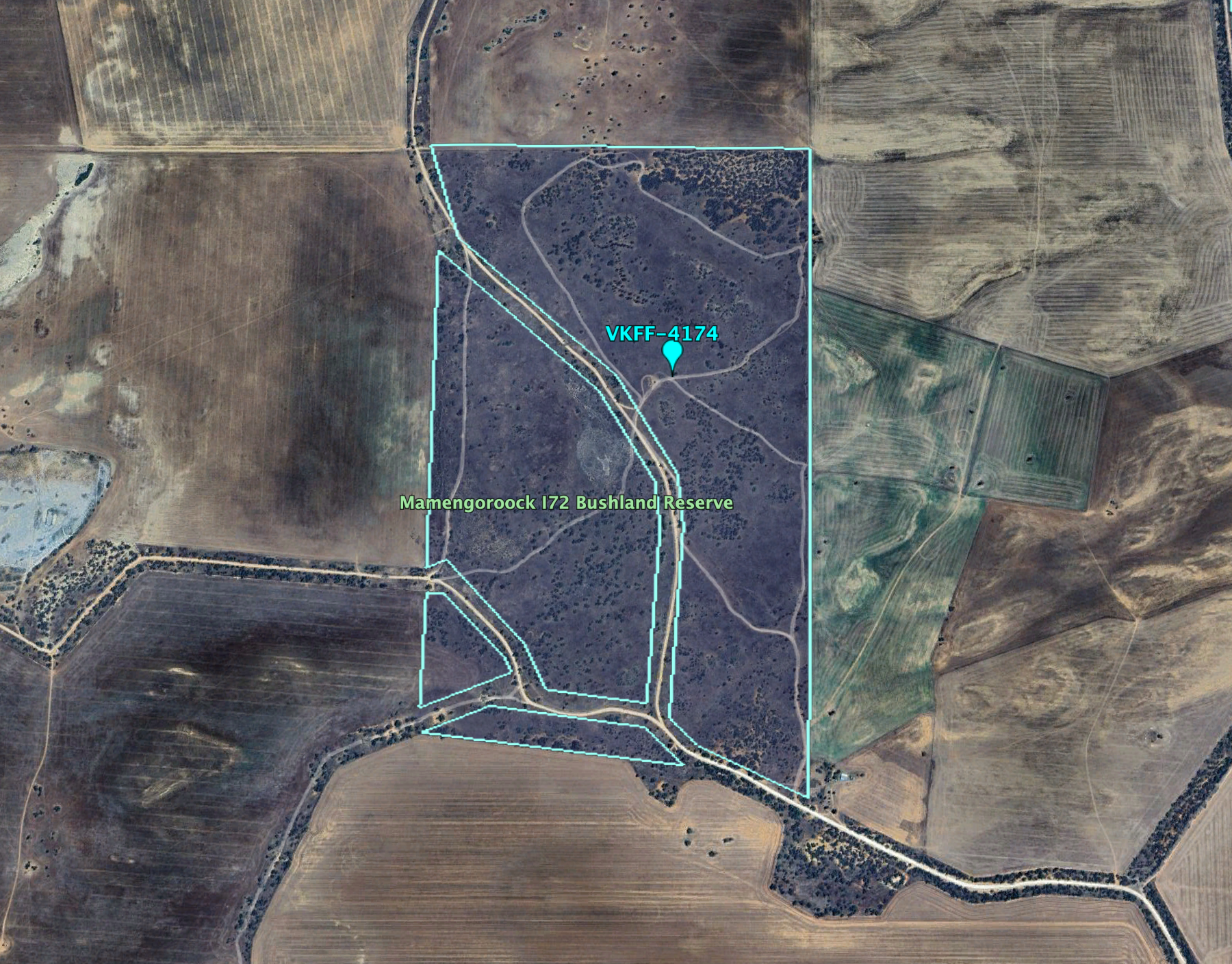 Above:- An aerial view of the Mamengoroock I72 Bushland Reserve. Image c/o Google Earth.