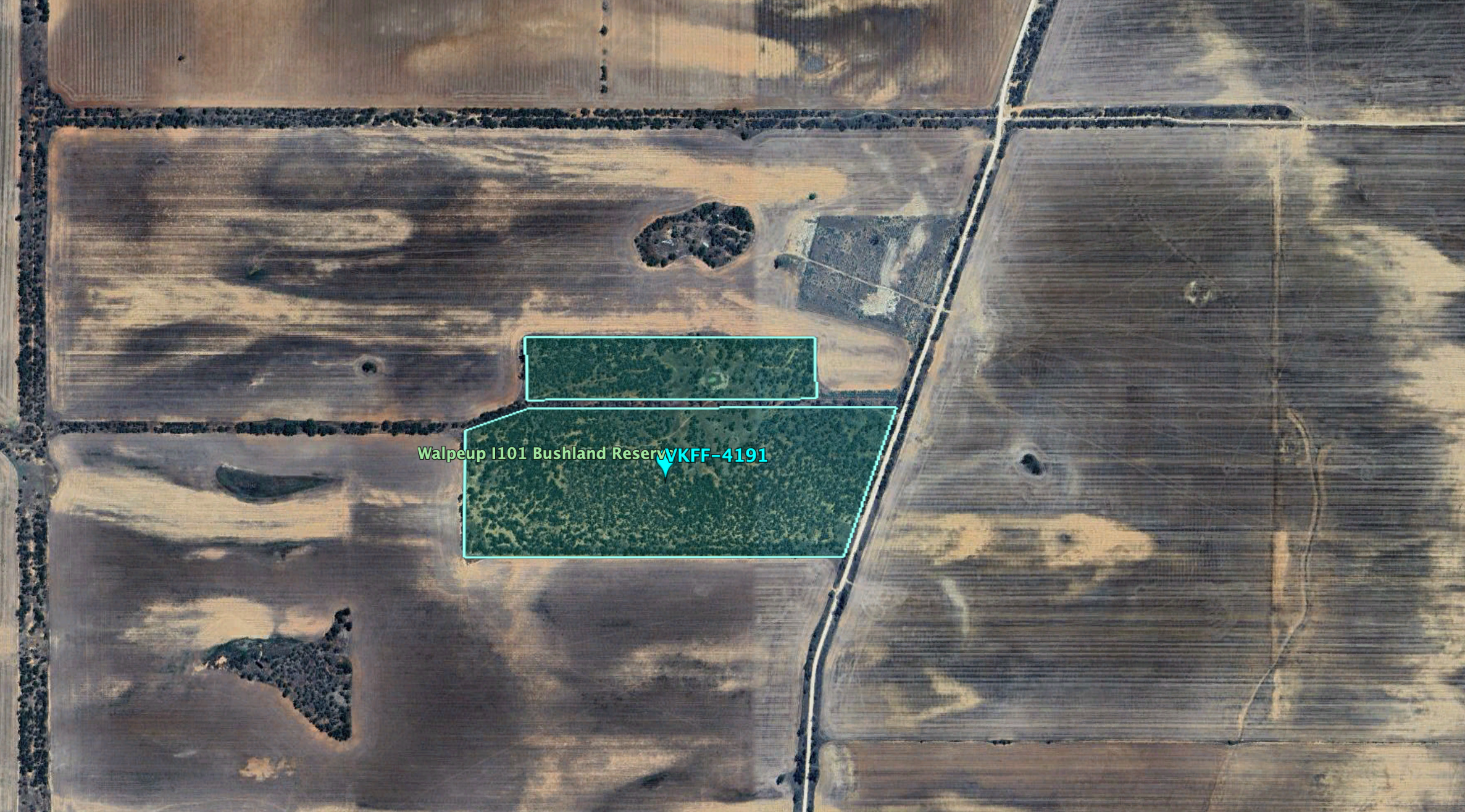 Above:- An aerial view of the Walpeup I101 Bushland Reserve. Image c/o Google Earth.