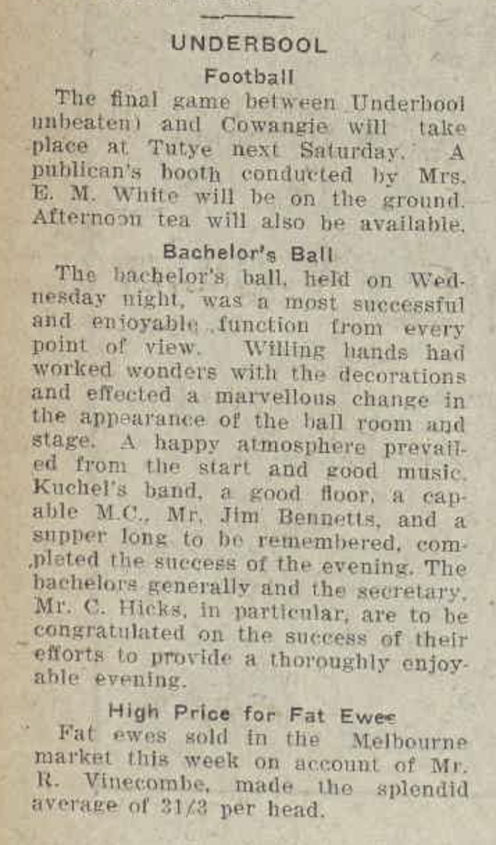 Above:- Article from the Ouyen Mail, Mon 18 Sep 1933. Image c/o Trove