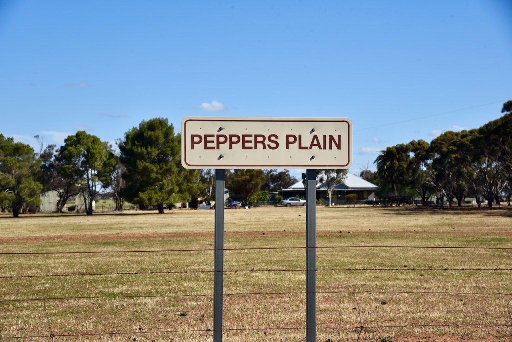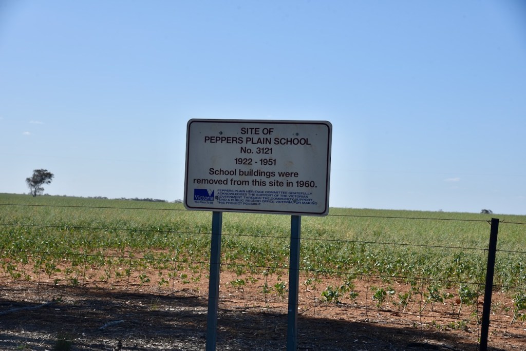 As we drove along the Jeparit-Warracknabeal Road, we passed through Peppers Plain. The area takes its name from John H. Pepper who held Coolanuck station in 1848.