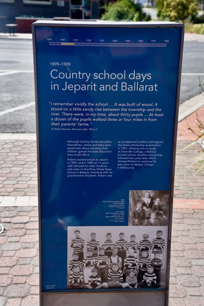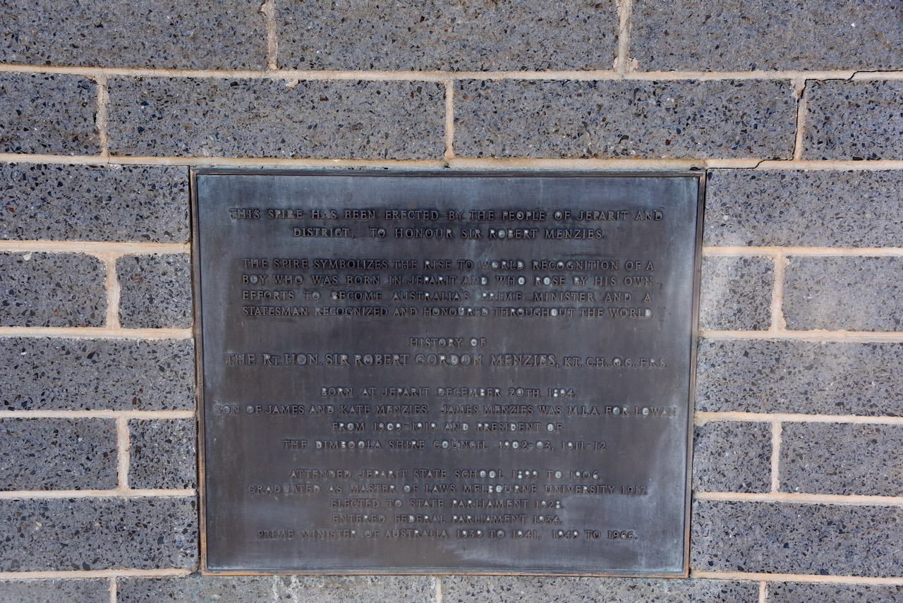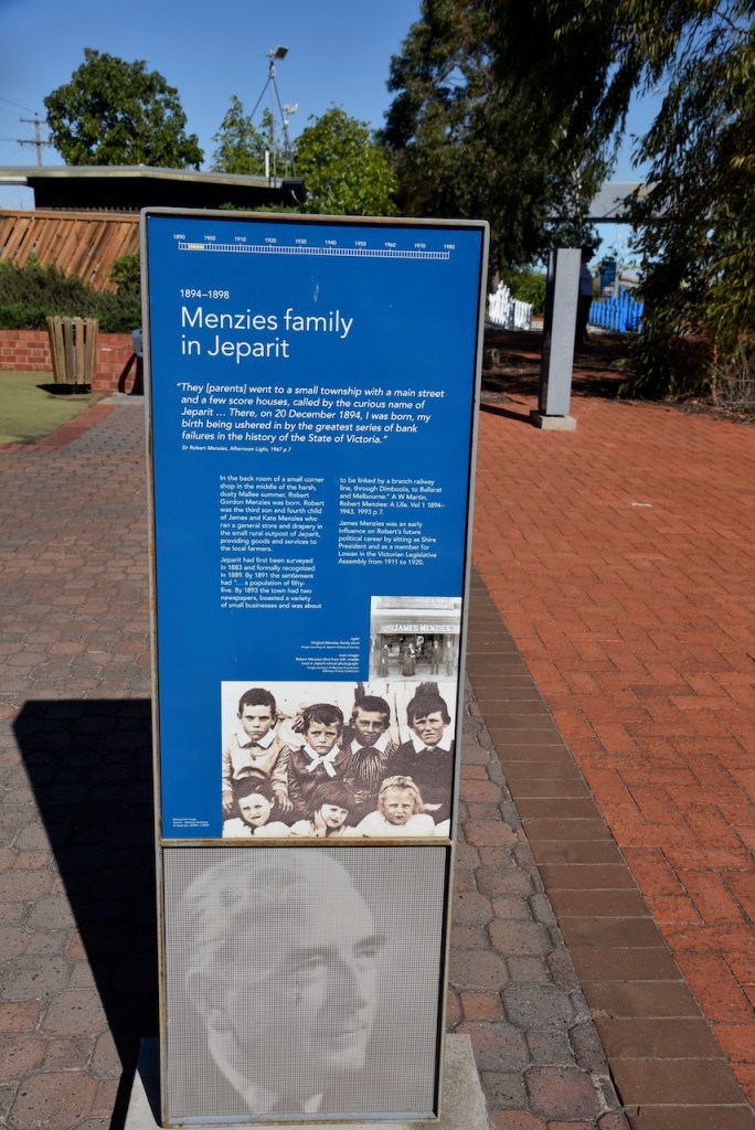 Marija and I soon reached the little town of Jeparit. It is famous for being the birthplace of Sir Robert Menzies. Jeparit is believed to be a corruption of an aboriginal word meaning ‘the home of small birds’. (Aussie Towns 2024)