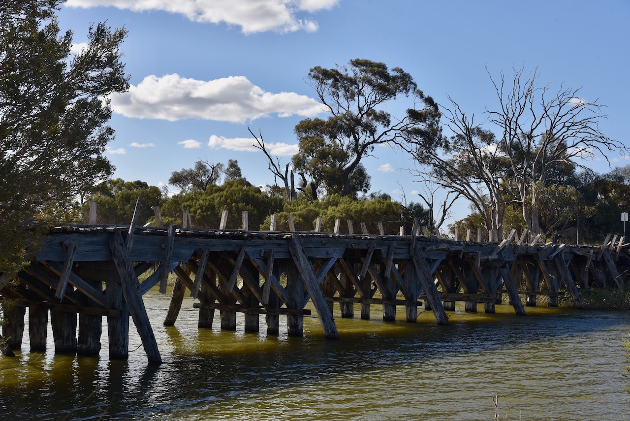 The Jeparit Bridge was constructed in 1891 and was opened the following year in 1892. It is one of Victoria’s oldest surviving timber road bridges. (Vic.gov.au, 2025)