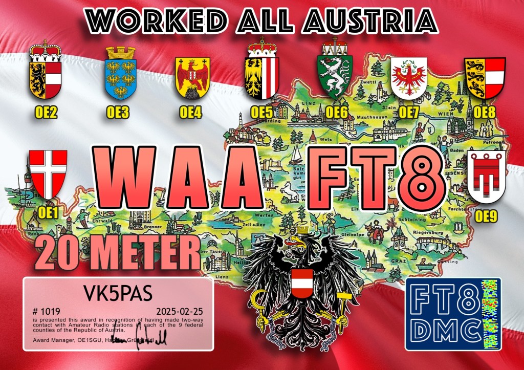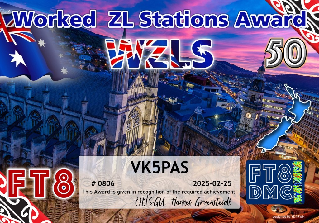 Thank you to all of the FT8 operators and the various Award Managers.