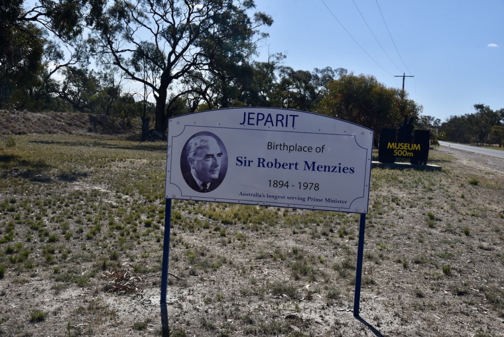 Marija and I soon reached the little town of Jeparit. It is famous for being the birthplace of Sir Robert Menzies. Jeparit is believed to be a corruption of an aboriginal word meaning ‘the home of small birds’. (Aussie Towns 2024)
