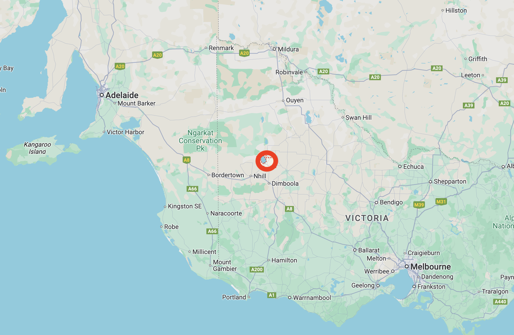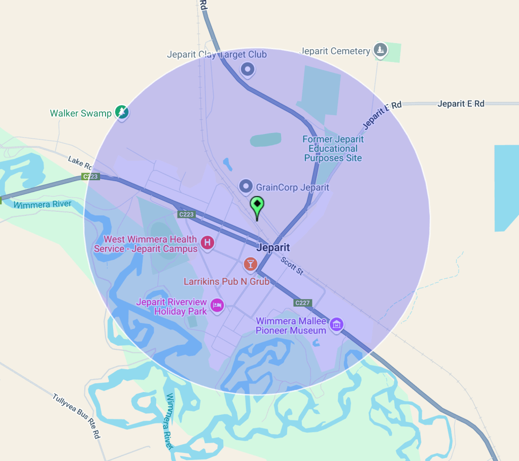 Above: The map shows the location of Jeparit in western Victoria. Map c/o Google Maps.