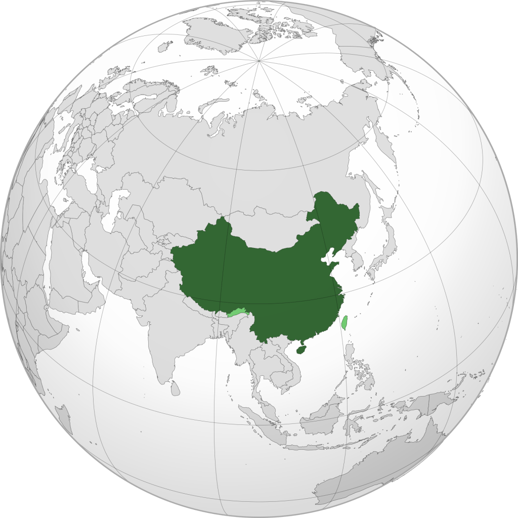 Above:- World globe showing the location of China. Image c/o Wikipedia.