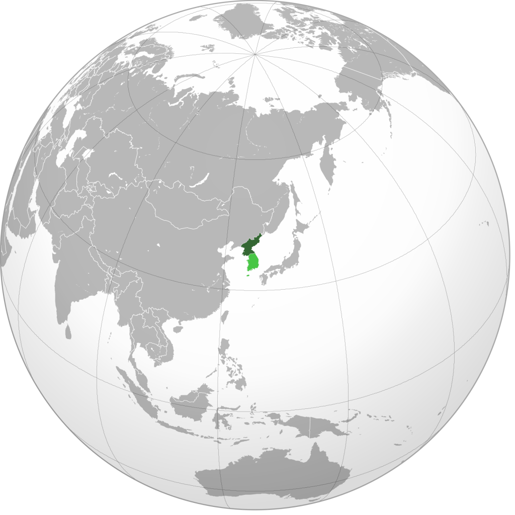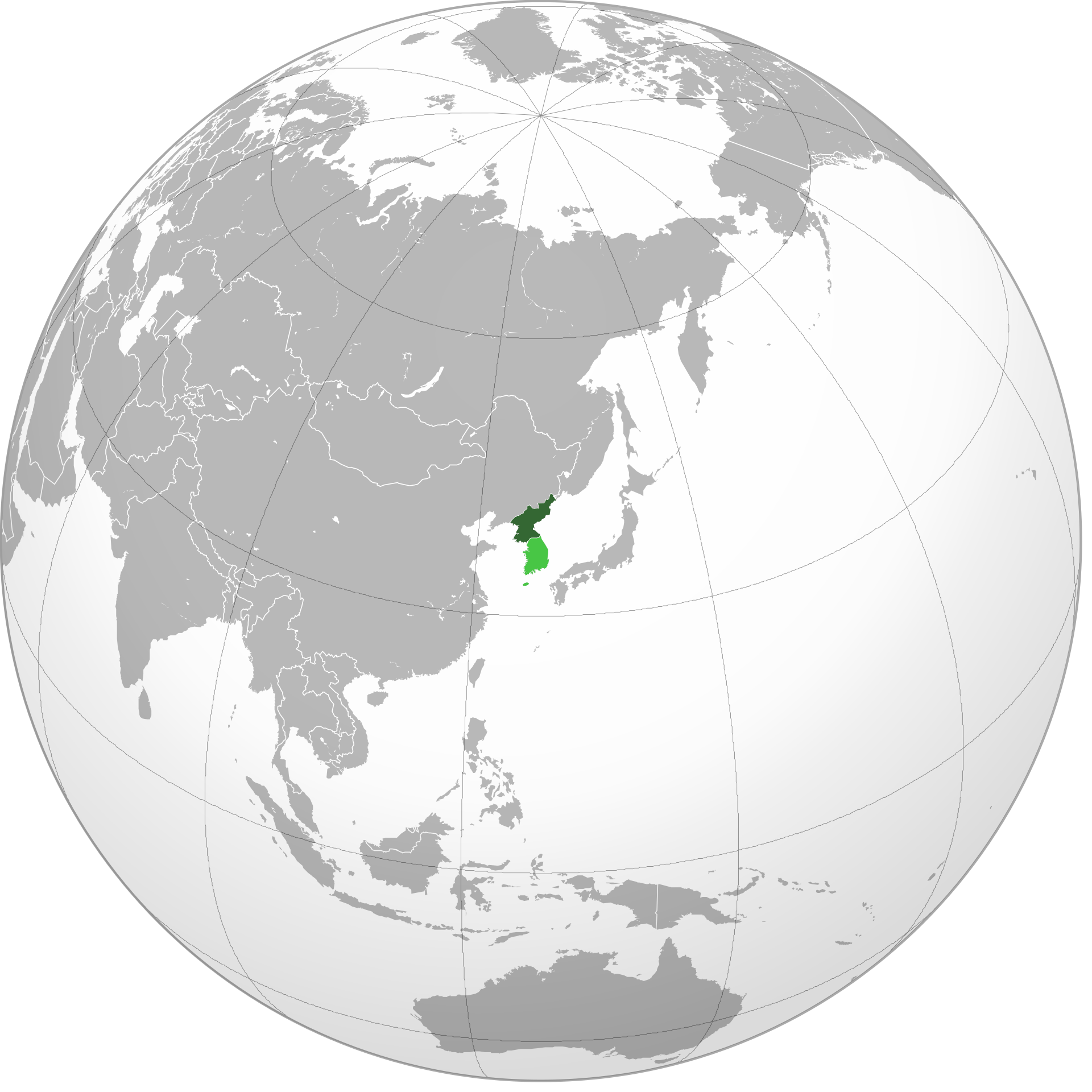 Above:- World globe showing the location of North Korea. Image c/o Wikipedia.