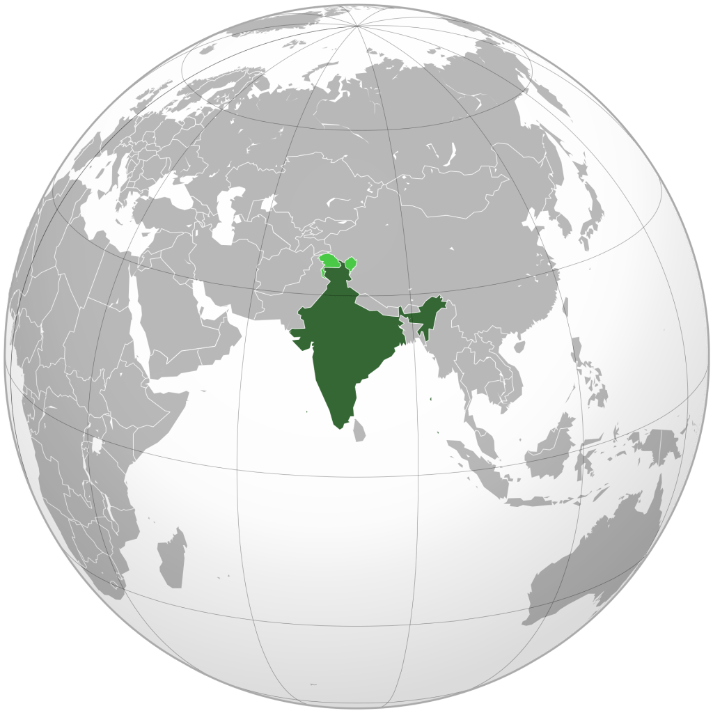 Above:- World globe showing the location of India. Image c/o Wikipedia.