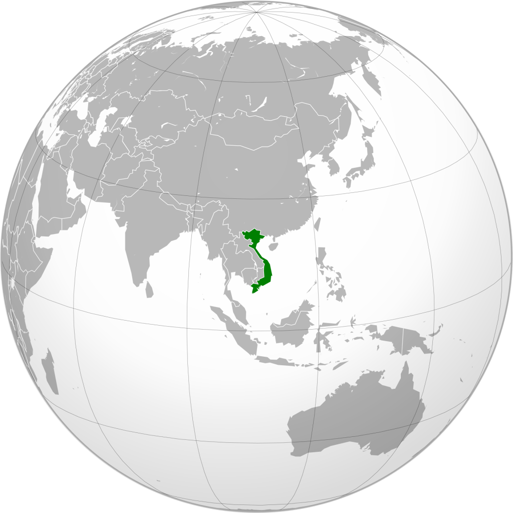 Above:- World globe showing the location of Vietnam. Image c/o Wikipedia.
