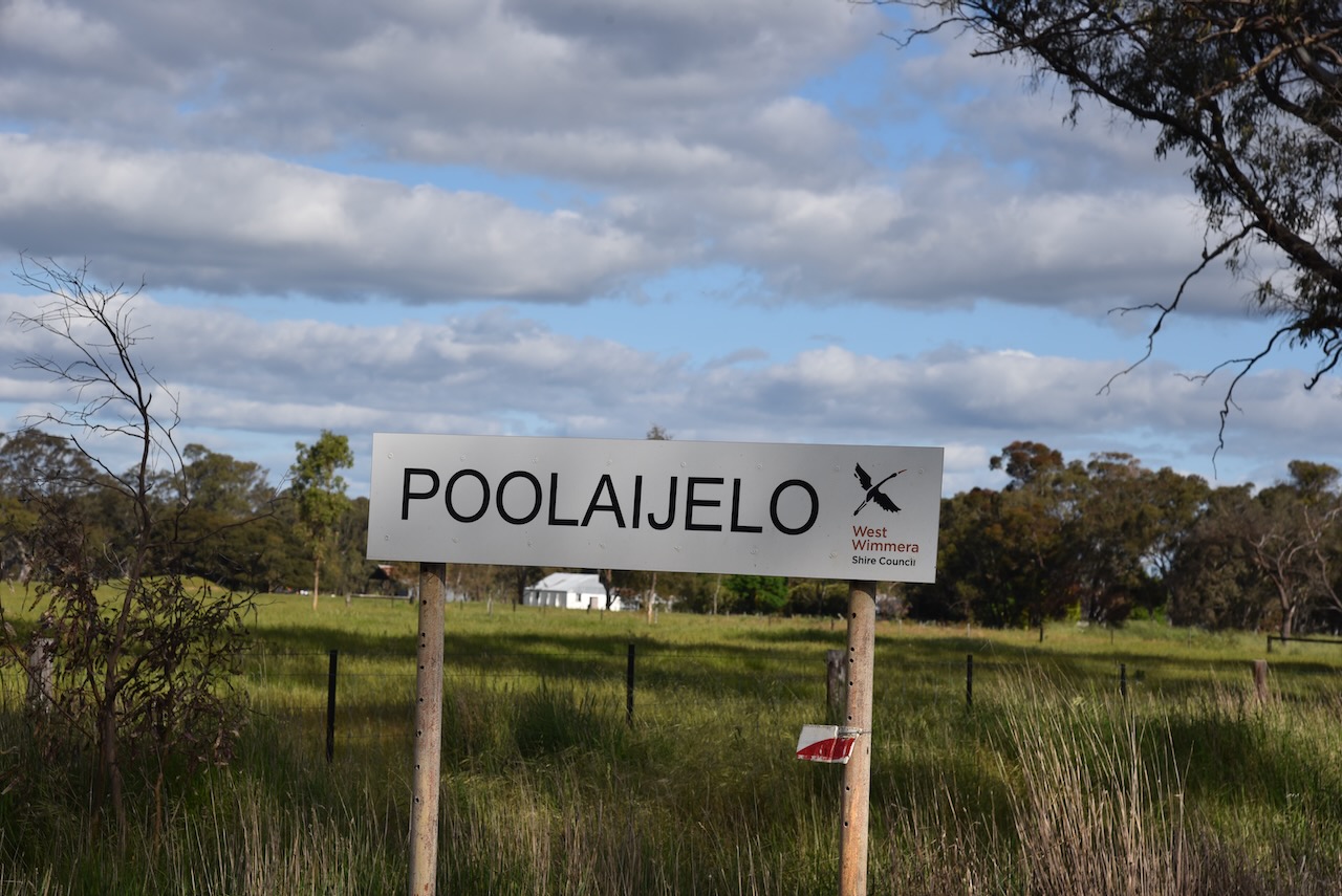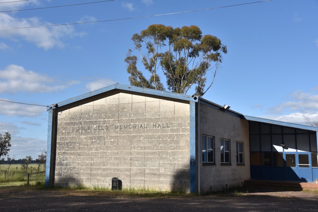 Along the way, we stopped at the little town of Poolaijelo. Don’t blink, you will miss this little place. Poolaijelo is an Aboriginal word meaning two swamps. Sadly, the tennis courts are overgrown with weeds, with the only substantial building being the Poolaijelo Memorial Hall. (Blake 1978)