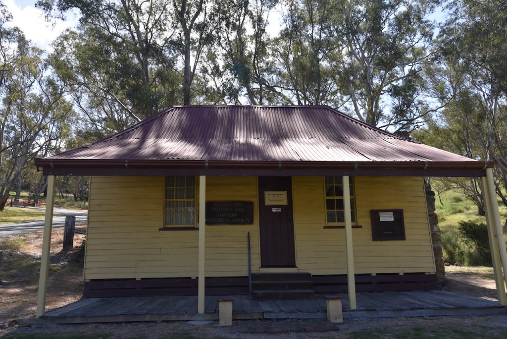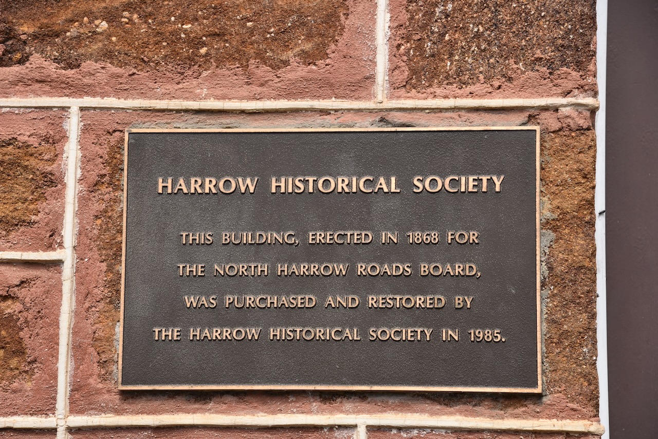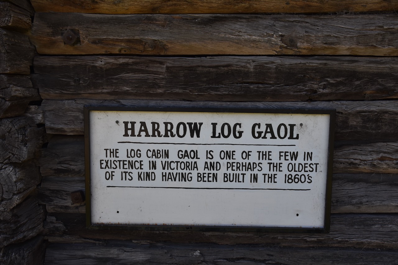 The oldest surviving building in Harrow is the old log gaol built in 1859 from locally sawn logs. It was used by the police until 1869.