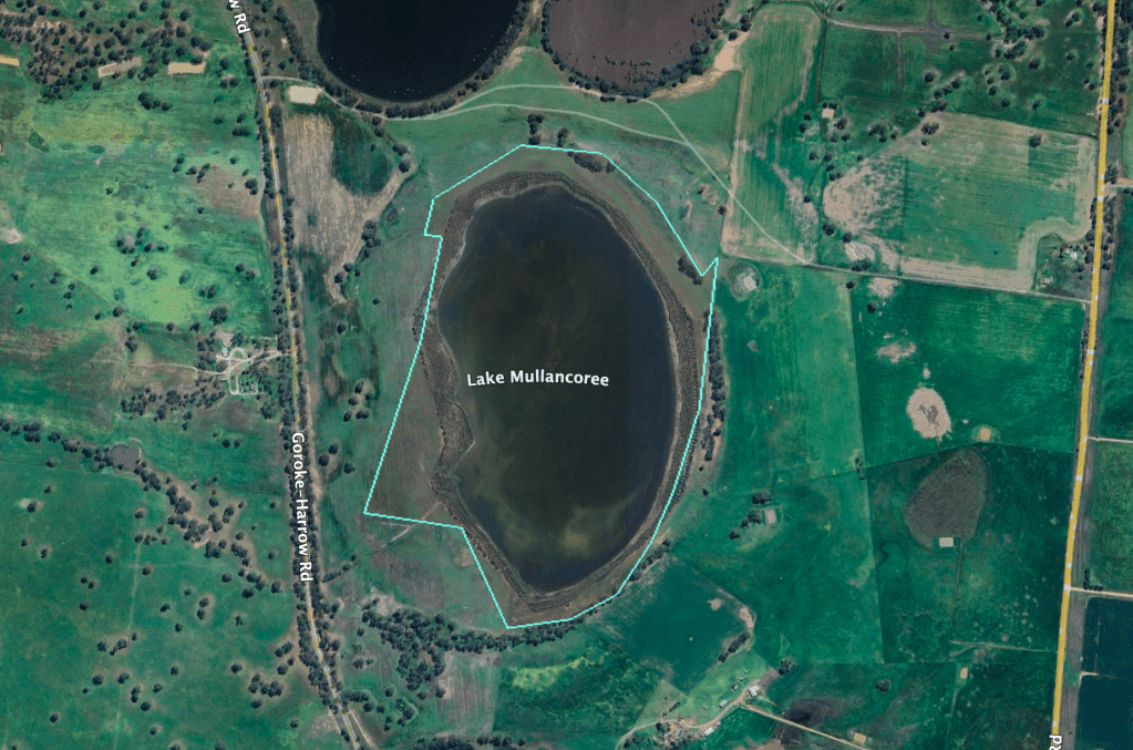 Above:- An aerial view of the Lake Mullancoree Wildlife Reserve. Image c/o Google Earth.
