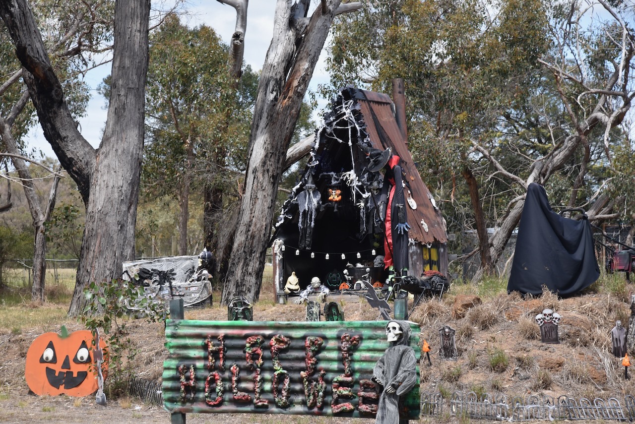 As we approached the town of Harrow, we came across the interesting property below. It had a Halloween collection and a display for the Harrow National Billycart championships.