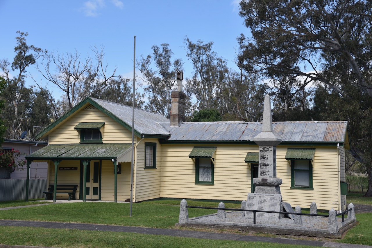 The Harrow War Memorial Obelisk is located outside the old Harrow courthouse (now RSL) built in 1877. The obelisk is on the Victorian Heritage Database.