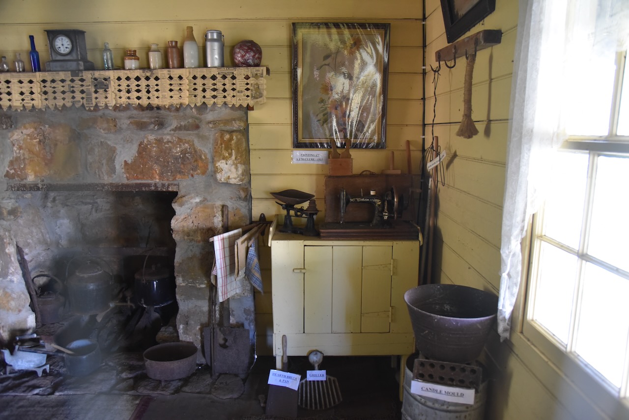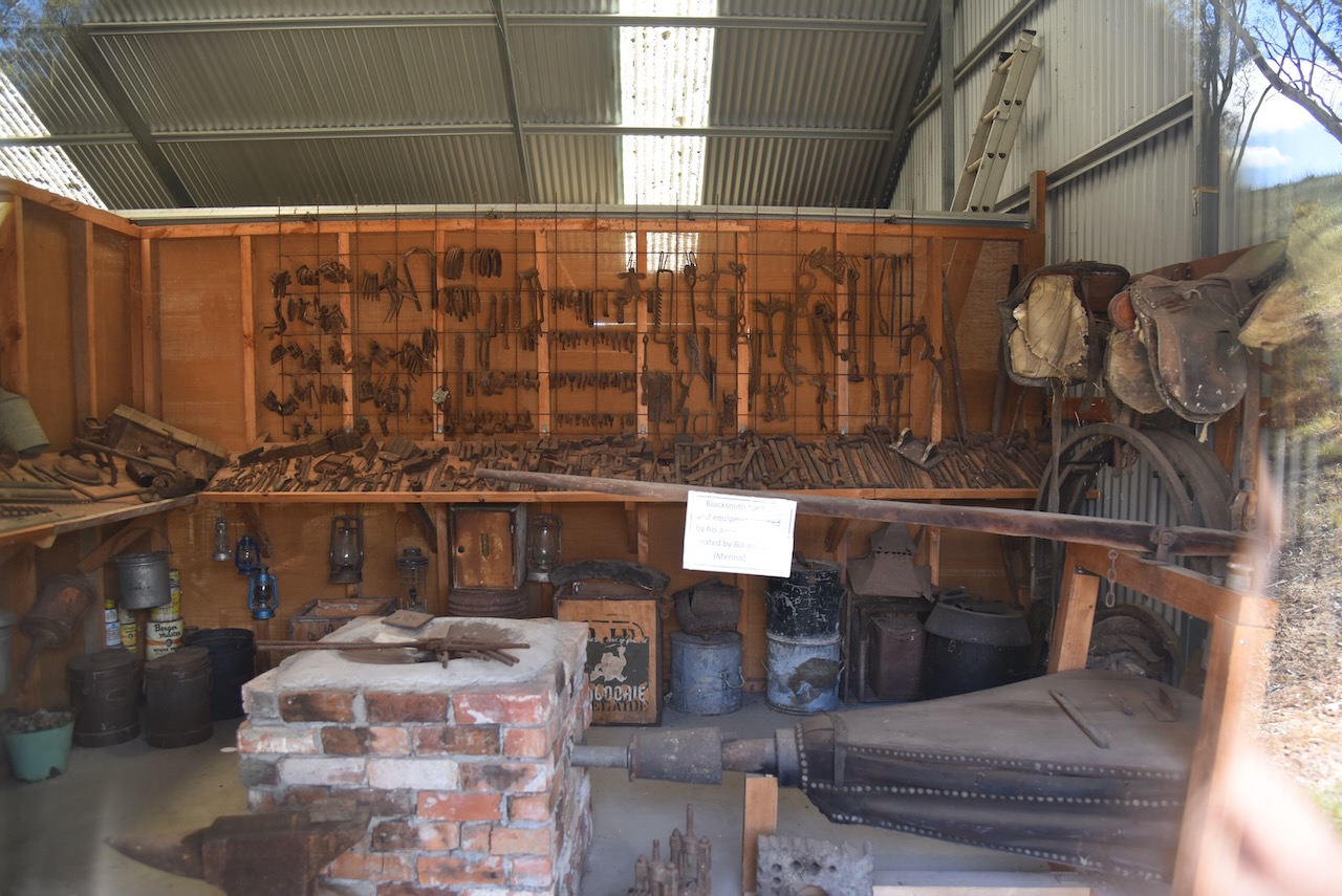 Near the cottage is an old horse drawn fire tank and an old tyre shrinker that was used by blacksmiths to shrink iron tyres to fit wooden wheels.