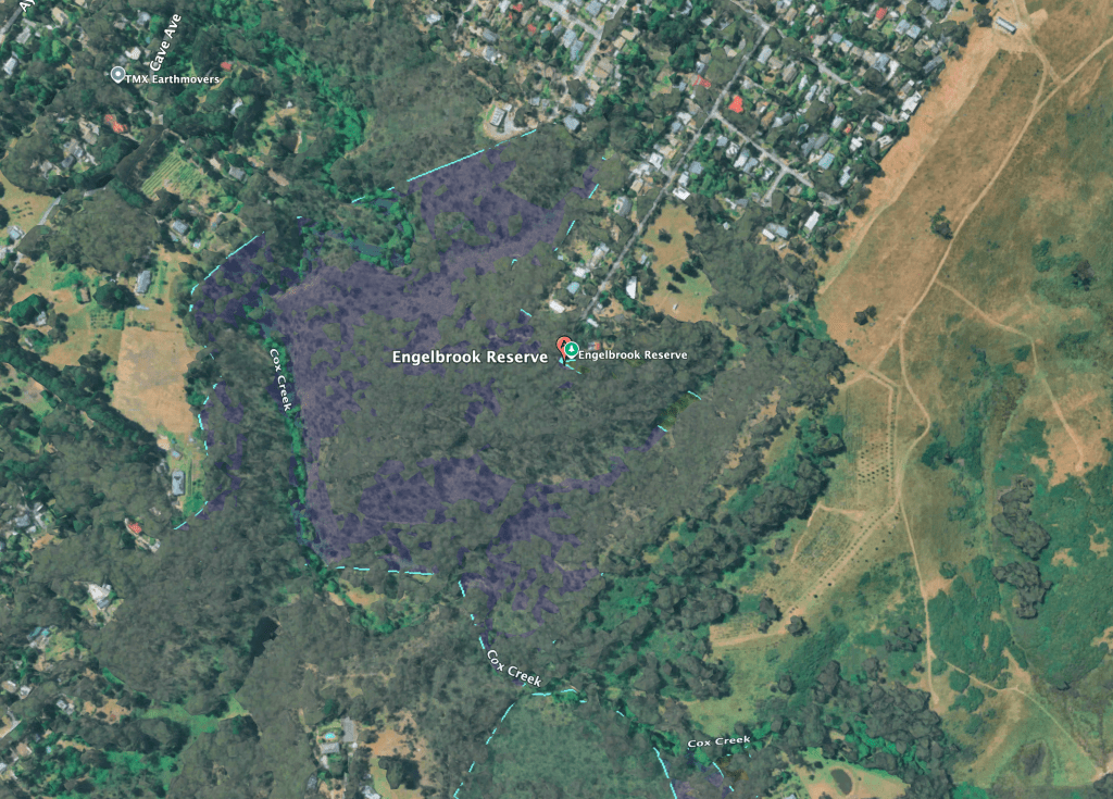 Above:- Map showing the location of Engelbrook Reserve. Map c/o Google Maps.