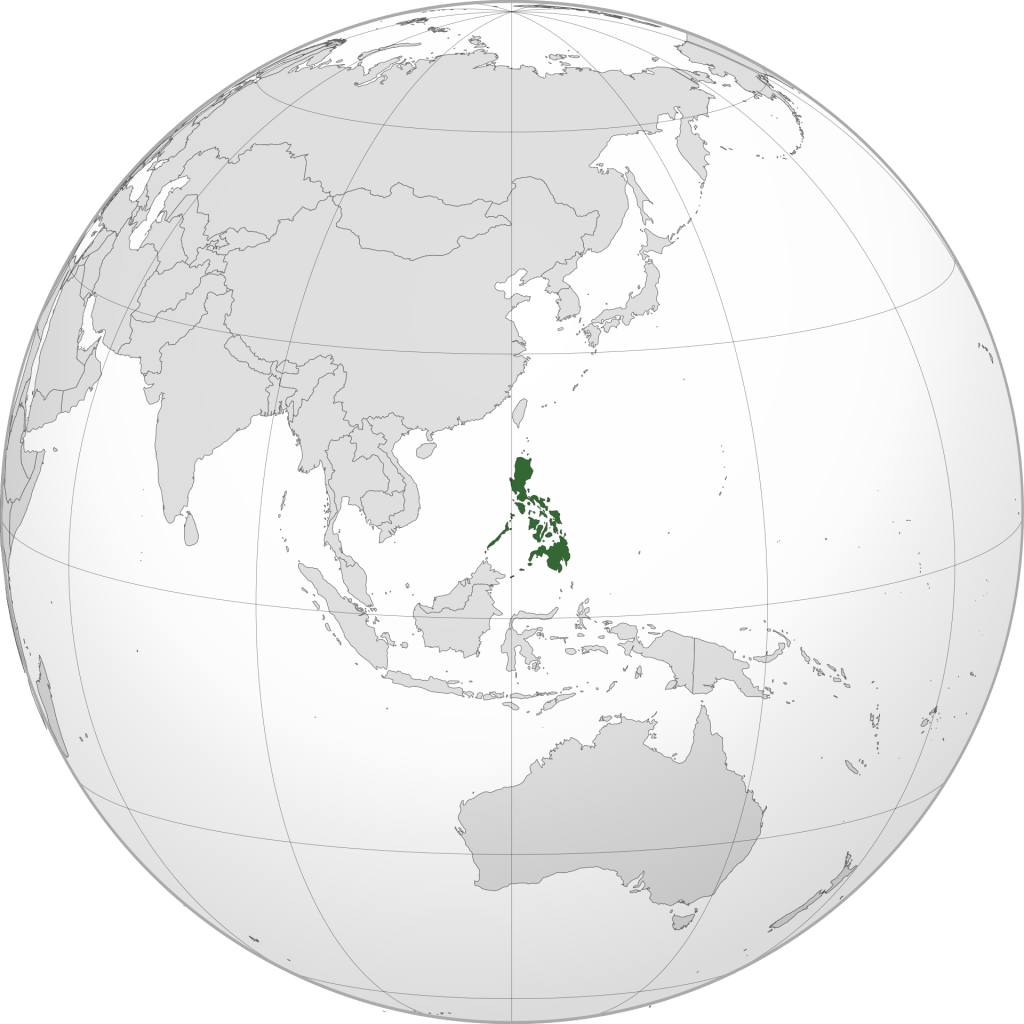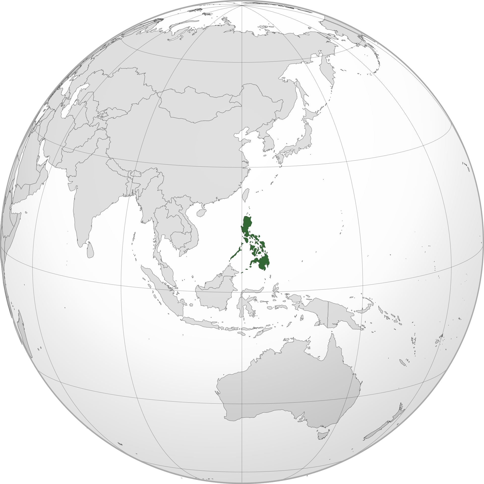 Above:- World globe showing the location of the Philippines. Image c/o Wikipedia.