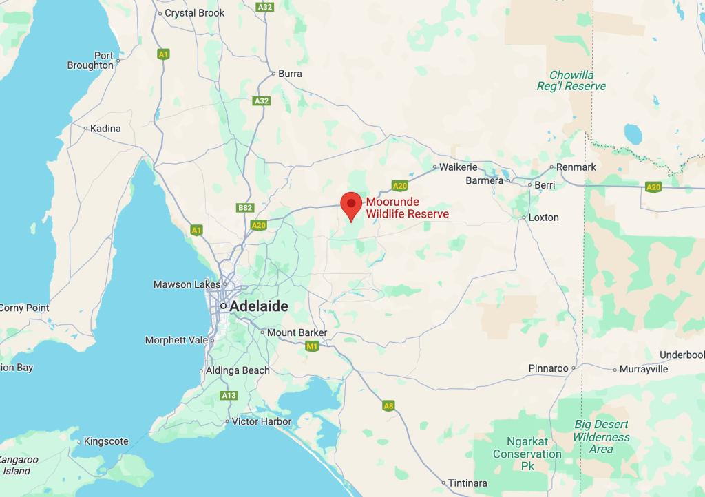 Above:- Map showing the location of the Moorunda Wildlife Reserve. Map c/o Google Maps.