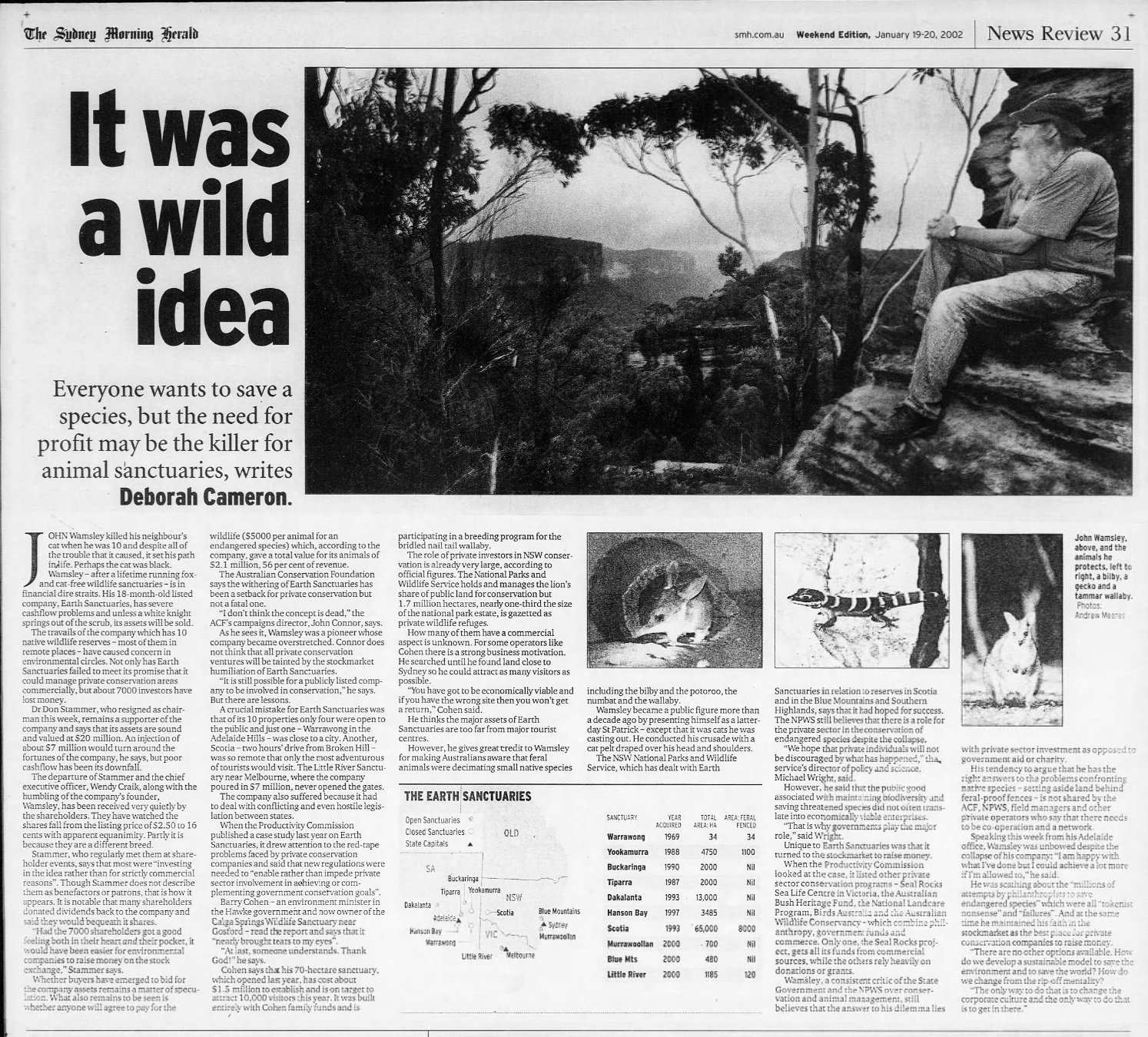 Above:- Article from The Sydney Morning Herald, 19 Jan 2002, re Earth Sanctuaries. Image c/o newspapers.com