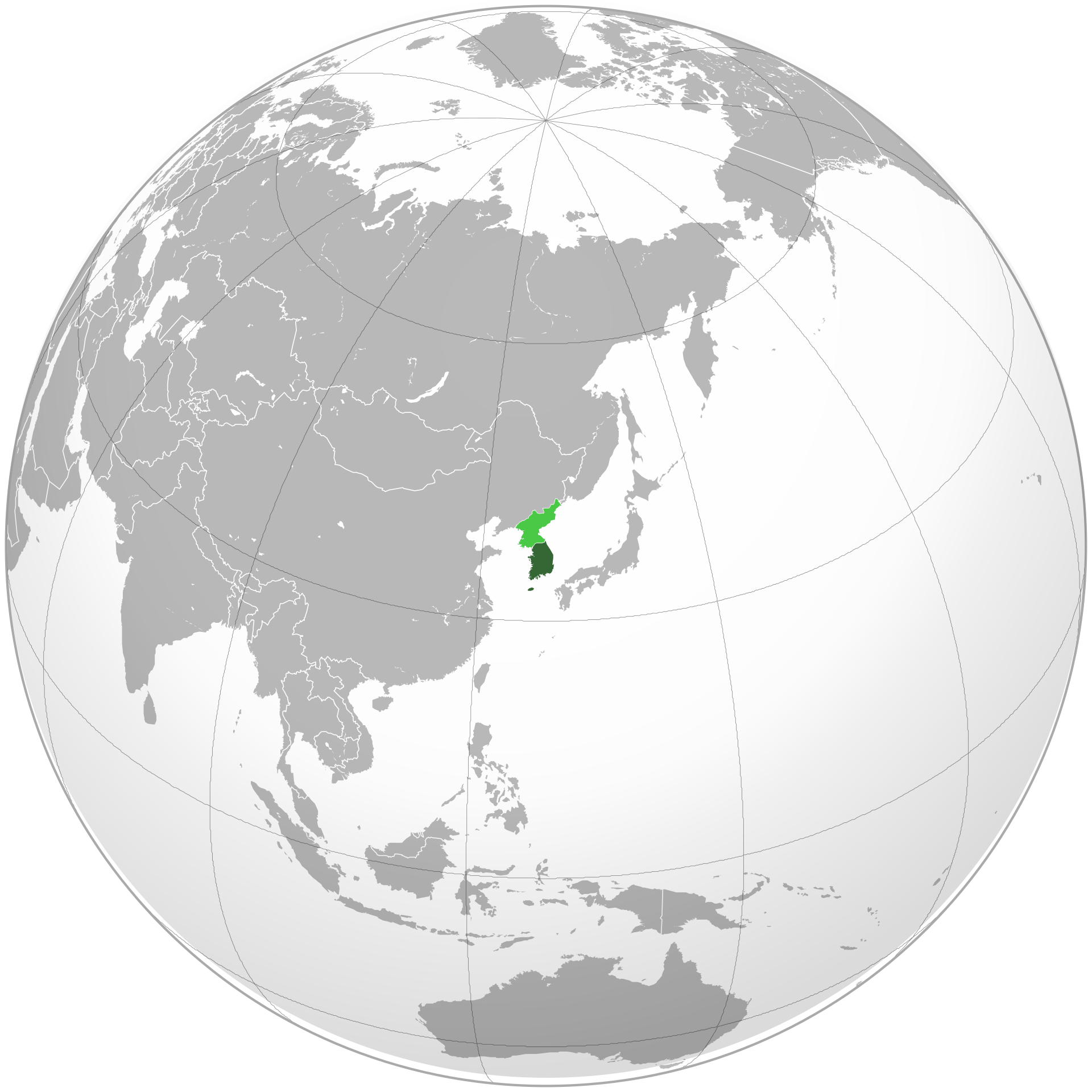 Above: World globe showing the location of South Korea. Image c/o Wikipedia
