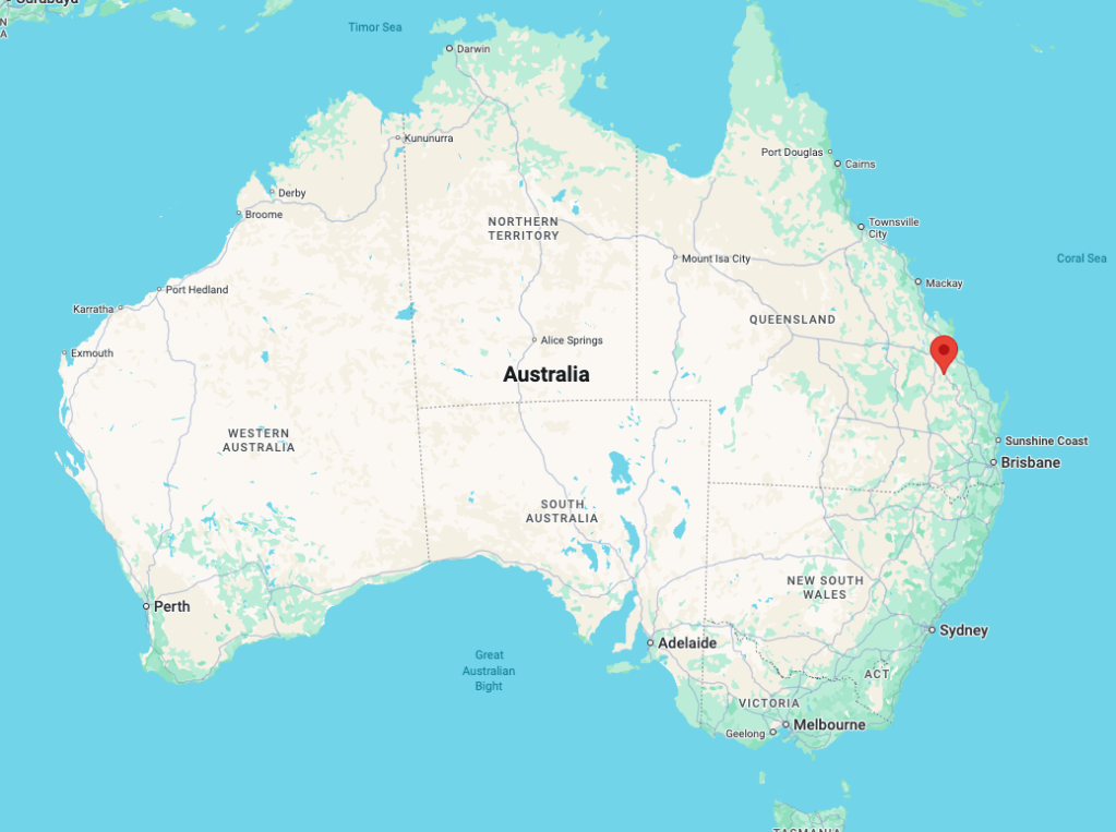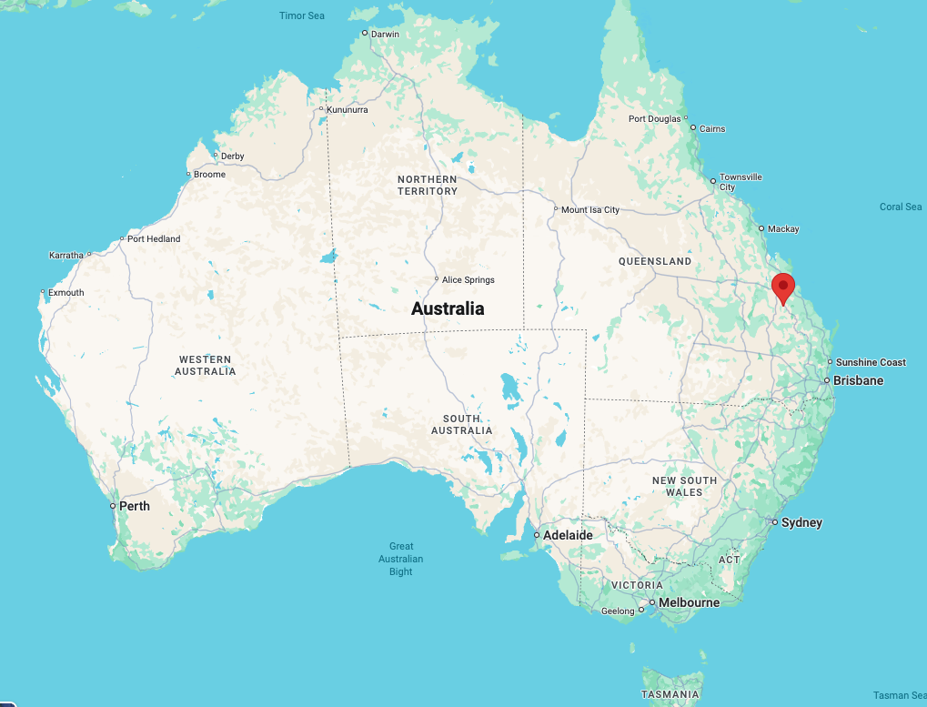 Above: Map showing the location of Biloela. Map c/o Google Maps