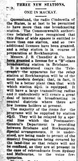 Trove. (2025). THREE NEW STATIONS. – ONE IN MACKAY. – Daily Mercury (Mackay, Qld. : 1906 – 1954) – 1 Jul 1930. [online] Available at: https://trove.nla.gov.au/newspaper/article/170456129 [Accessed 28 Jul. 2025].