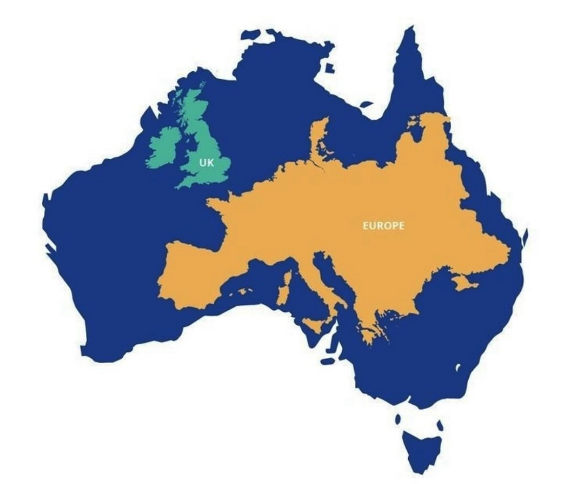 Above:- Map of Australia compared to Europe and the UK.