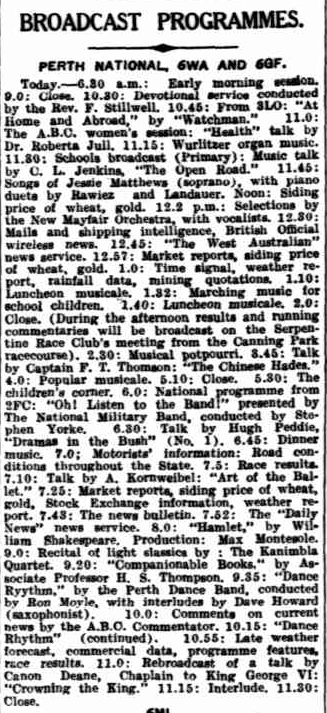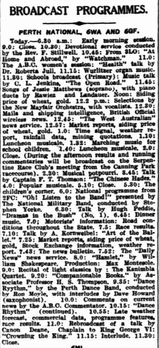 Below is an article from The West Australian in 1937 showing the broadcast programs for 6WA.