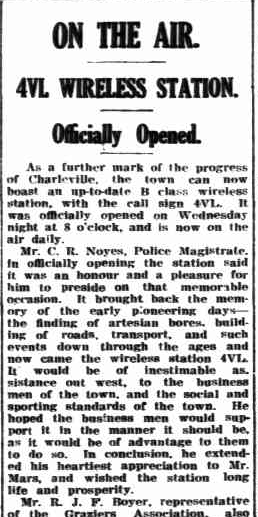 4VL commenced broadcasting on Wednesday the 12th day of February 1936. The station was opened by Mr. C.R. Noyes, Police Magistrate. (Trove 2025) (Wikipedia 2025)