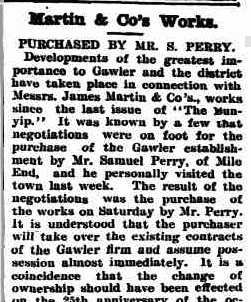 In 1915, Perry purchased the James Martin & Co. Phoenix Foundry works in Gawler, where locomotives had been produced. (Trove 2025)
