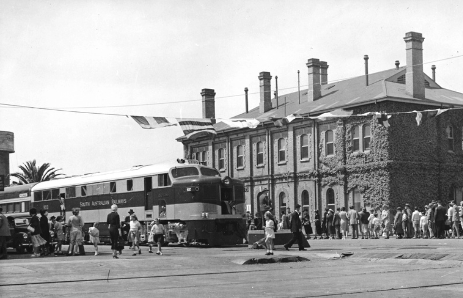A diesel locomotive at Islington, c. 1951. Image c/o State Library South Australia [B 58892/280]