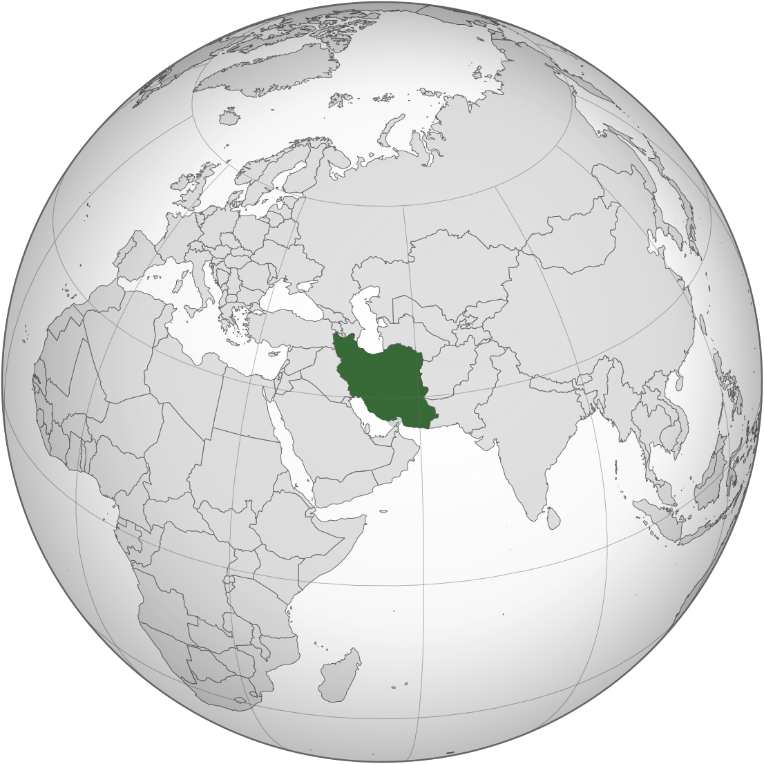 Above:- World globe showing the location of Iran. Image c/o Wikipedia.