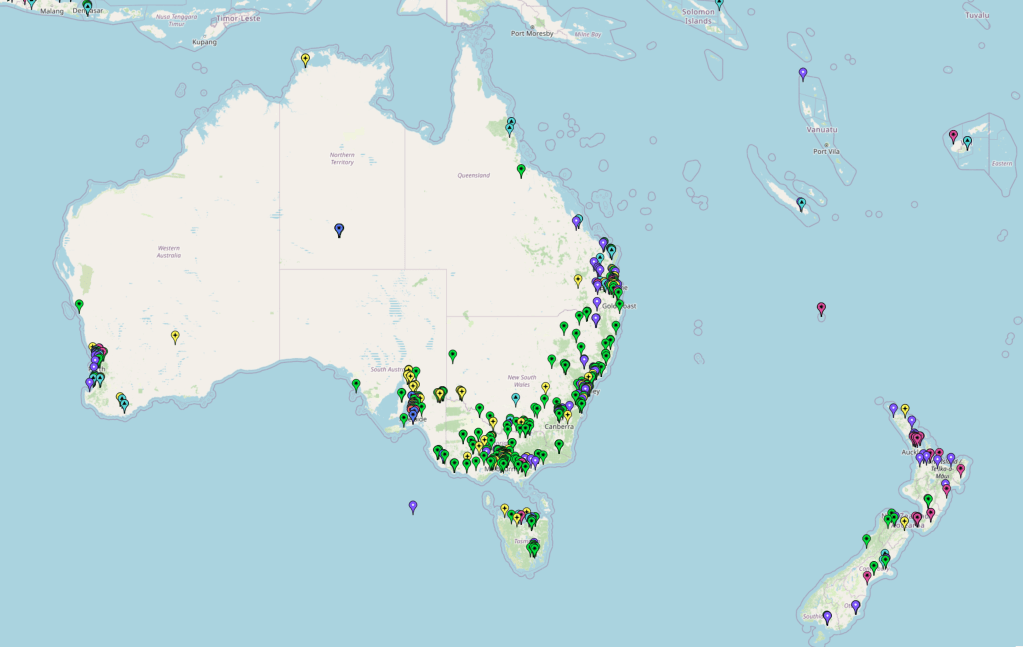 Below is a map showing my contacts around Australia and in to New Zealand.