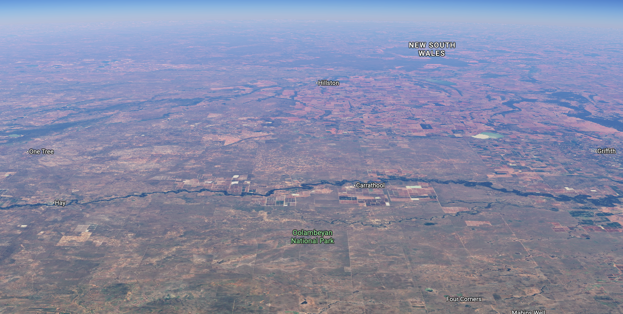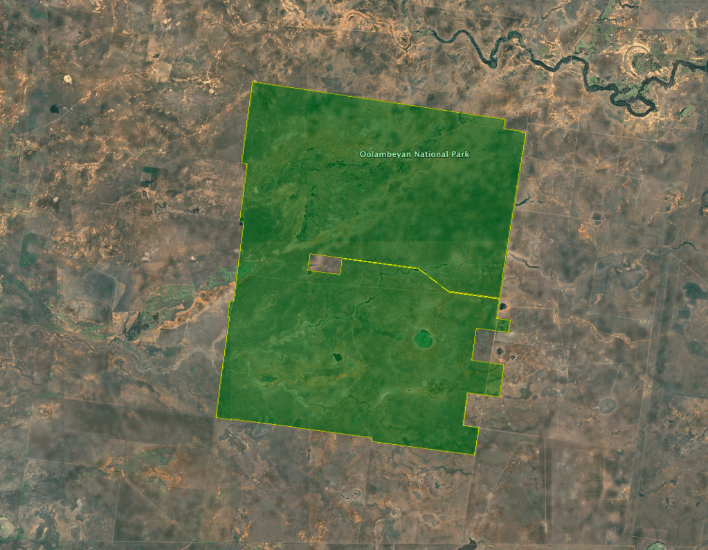 Above: the boundaries of the Oolambeyan National Park. Image c/o Google Earth