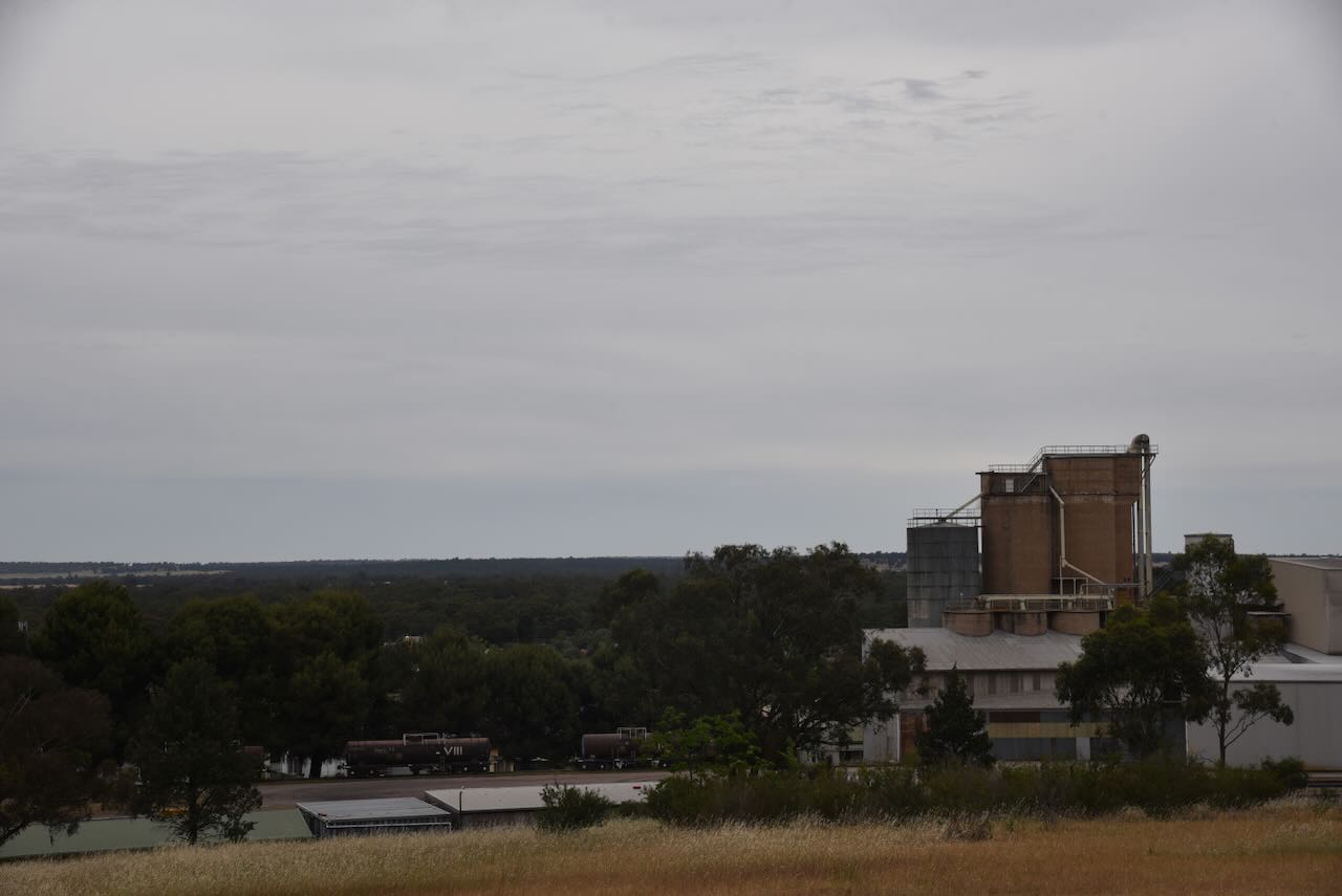 We then drove east on the Sturt Highway towards Darlington Point. We had hoped to see the historic Toganmain woolshed, but the internet said that it was temporarily closed. So we had to view the woolshed at a distance from the highway.