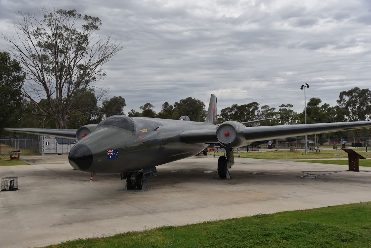 The Canberra aircraft on display at Wagga Wagga first flew on the 3rd day of September 1956 and was delivered to the RAAF in October 1956. It served with No 2 Squadron and was deployed to Butterworth in 1958 and Vietnam in 1967. It was used as a training aid from 1973 at the RAAF School of Technical Training, Wagga. (Air Force 2023)