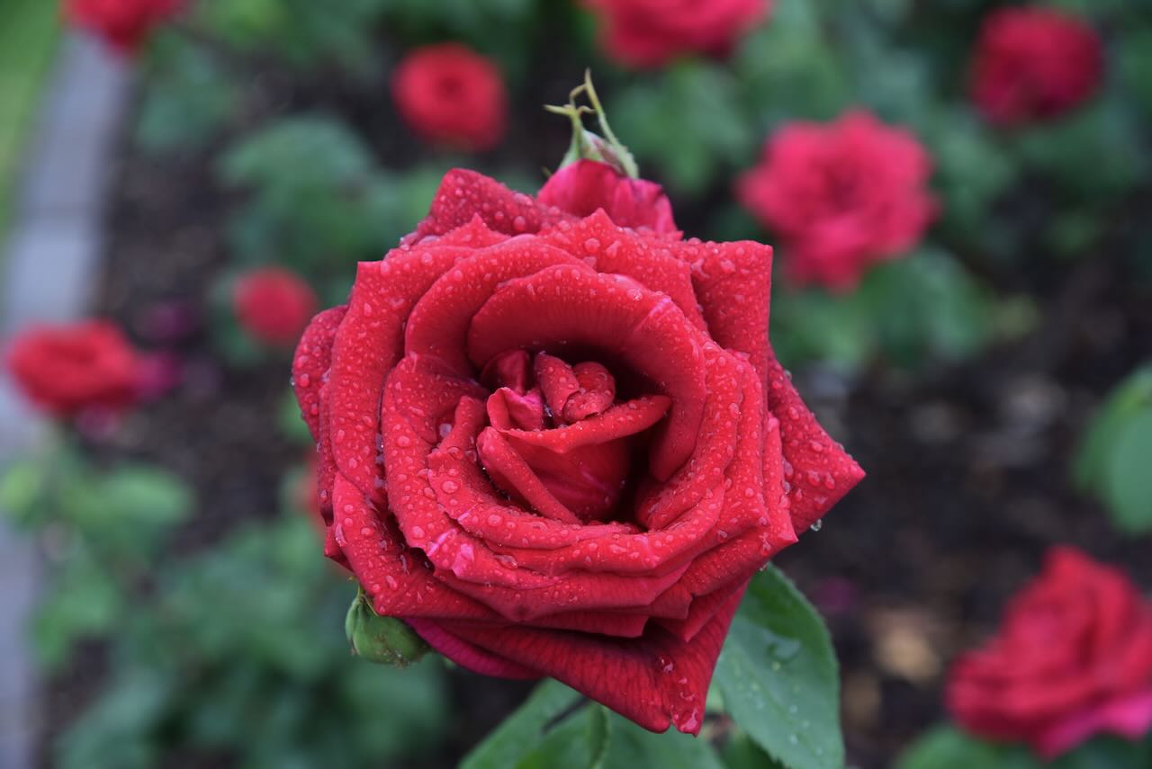 The roses in the rose garden were in full bloom and absolutely beautiful.