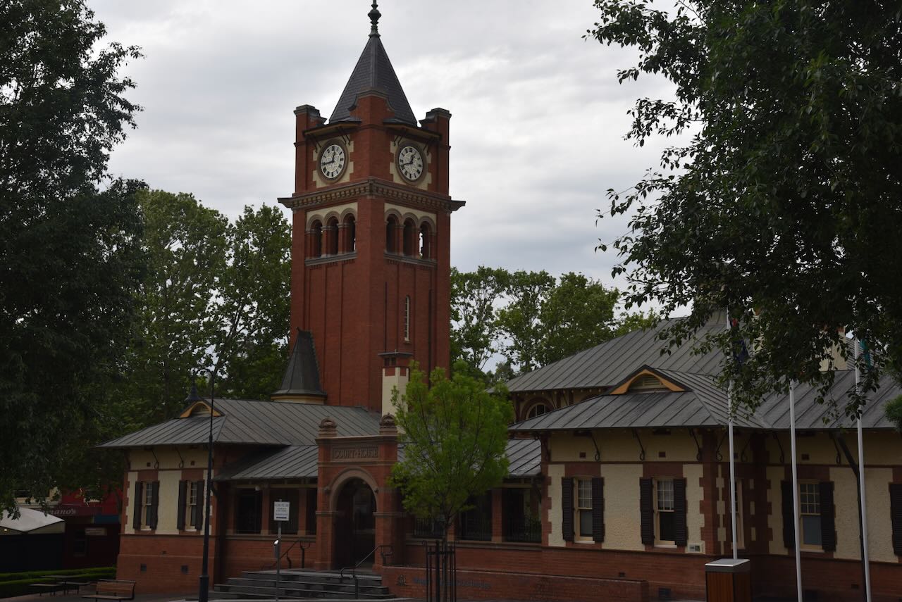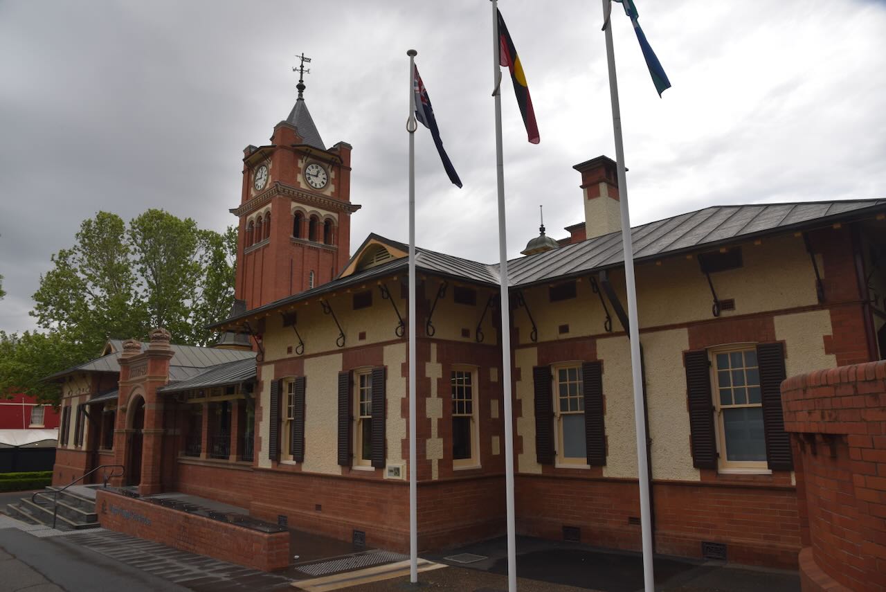 The old Wagga Wagga courthouse features an impressive clock tower.