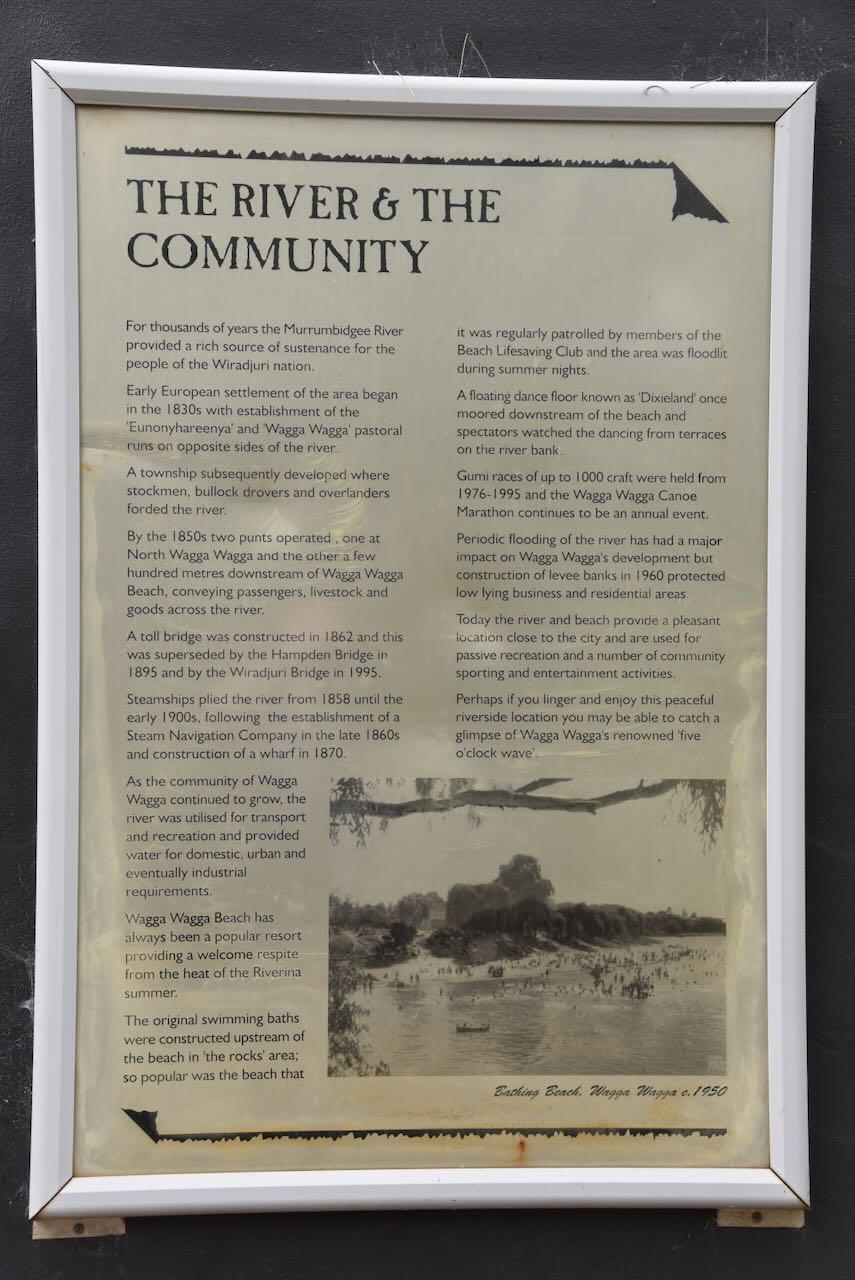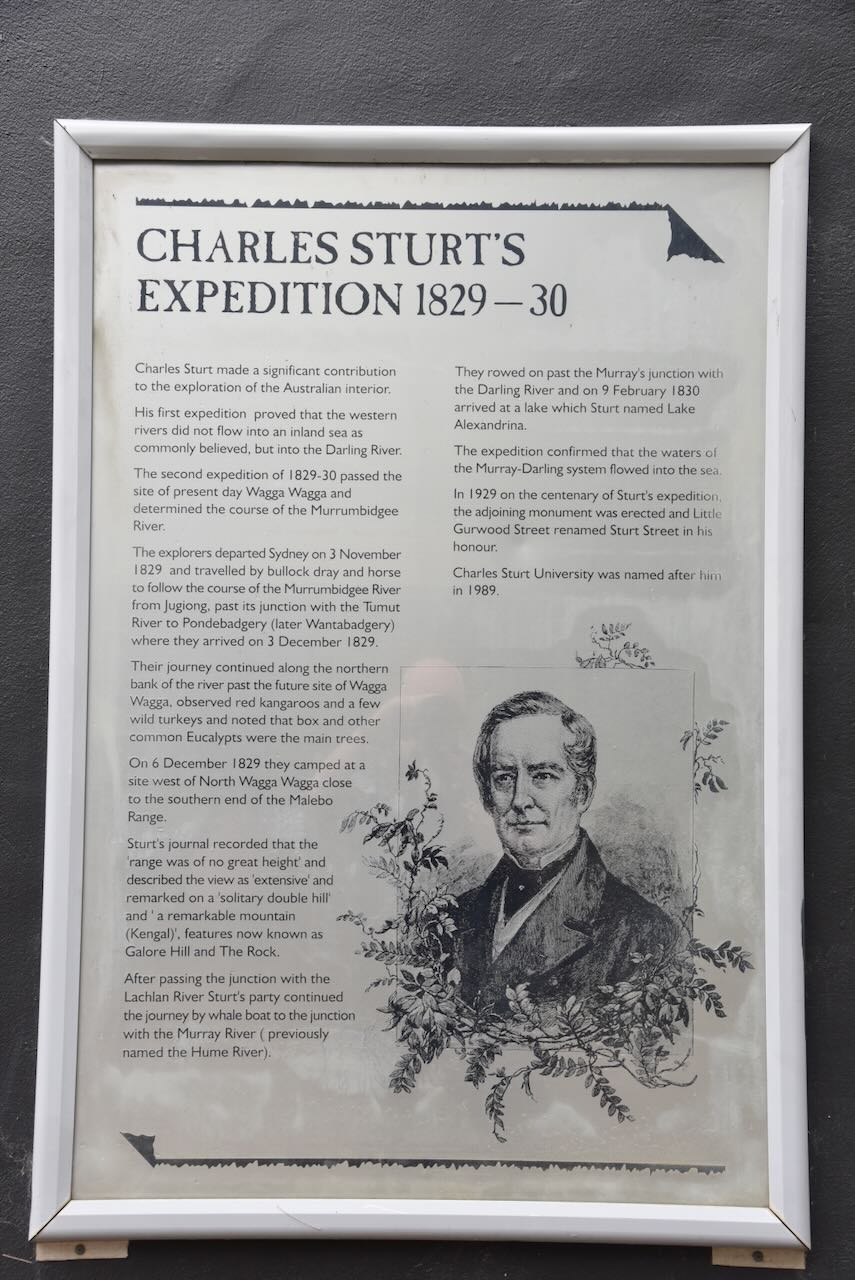Marija and I then drove down to the Murrumbidgee River at Wagga Wagga. There is a monument to commemorate the discovery of the district in 1829 by Captain Charles Sturt. There are also sevreal information boards about Sturt and the river.