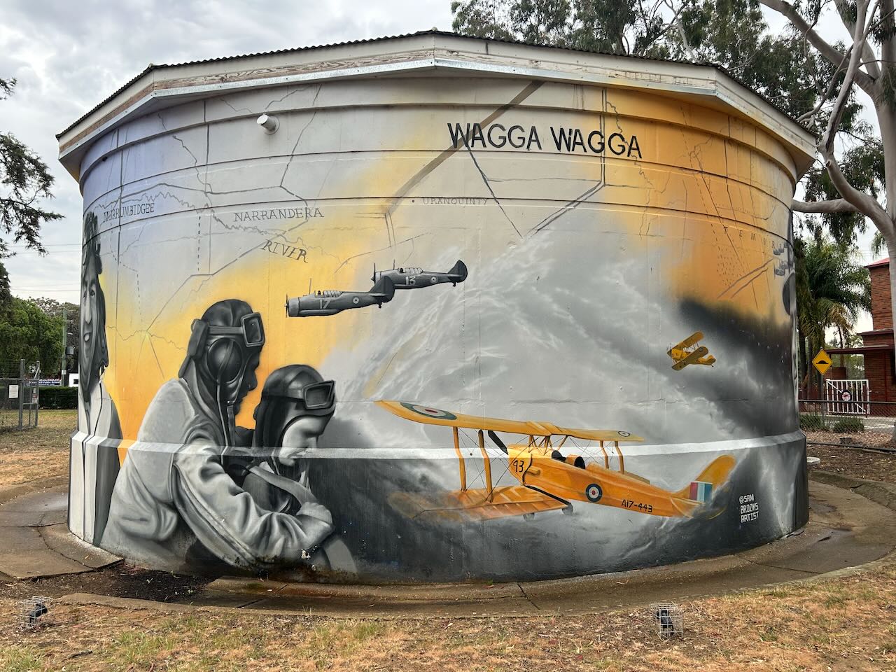 - Australiansiloarttrail.com. (2025). Wagga Wagga Water Tank Art RAAF Base. [online] Available at: https://www.australiansiloarttrail.com/wagga-wagga-raaf-base [Accessed 29 Dec. 2025].
