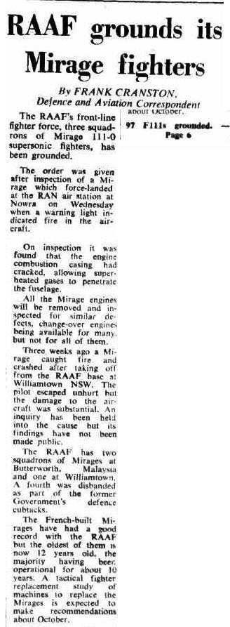 In March 1961, the Mirage was chosen as the replacement for the Sabre. On the 14th day of March 1963, the first RAAF Mirage flew in France. The following month, on the 9th day of April 1963, it was delivered to the RAAF. The Mirage became the RAAF’s frontline fighter for over 20 years. (Air Force 2023)