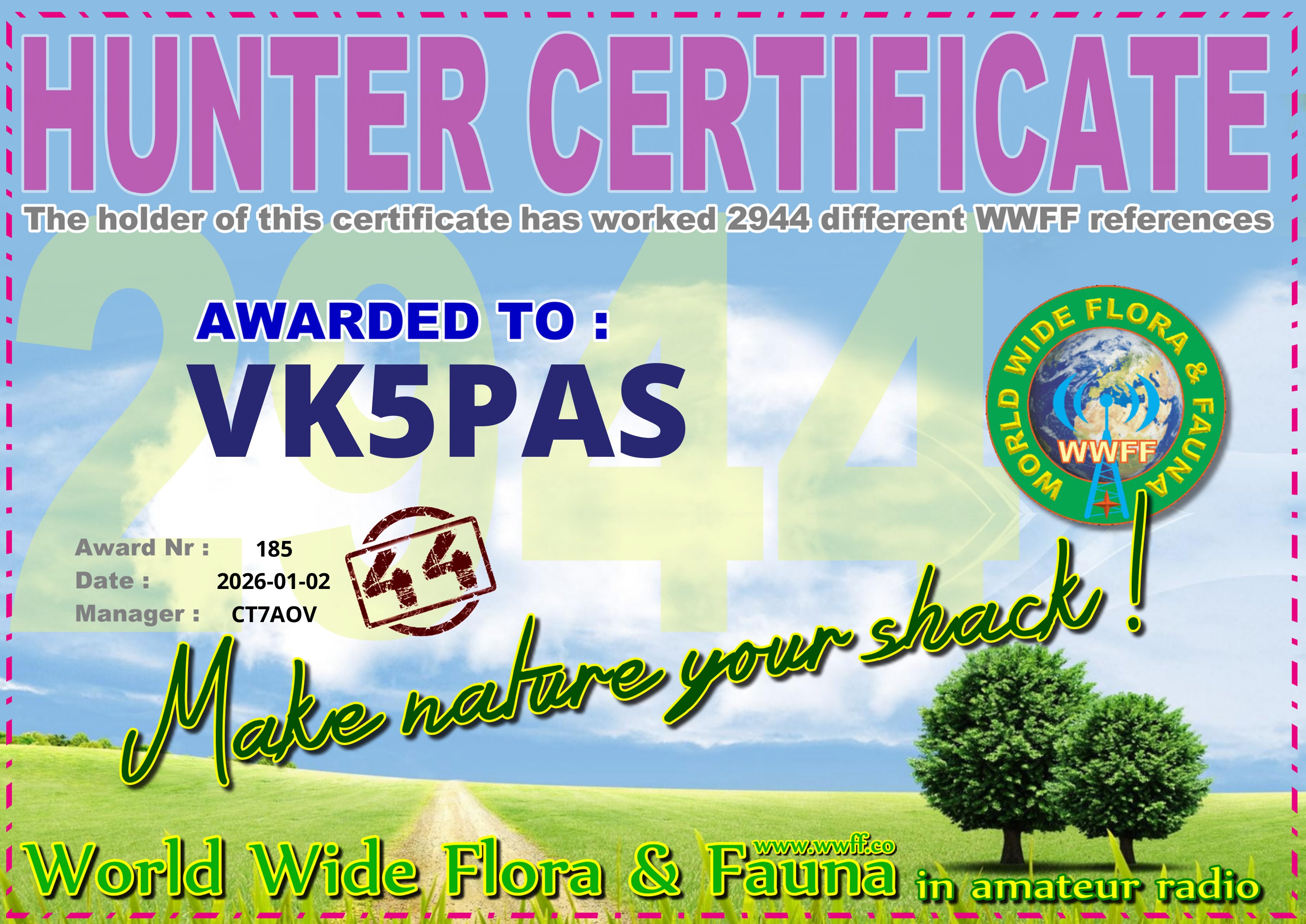 Thanks to all of the WWFF activators, and thank you to Hugo CT7AOV, the Awards Manager.