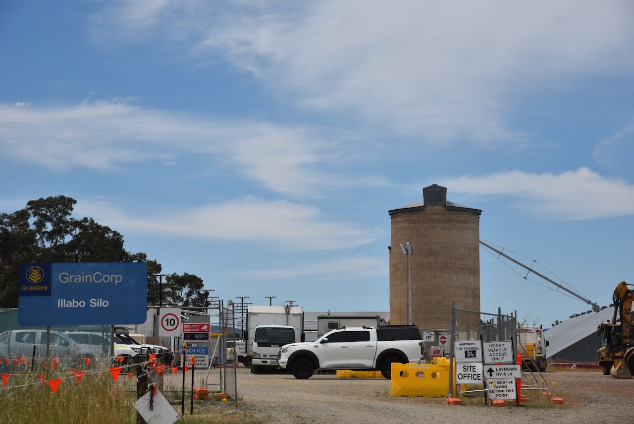The Illabo silos are located alongside the railway line on the southern side of the Olympic Highway.