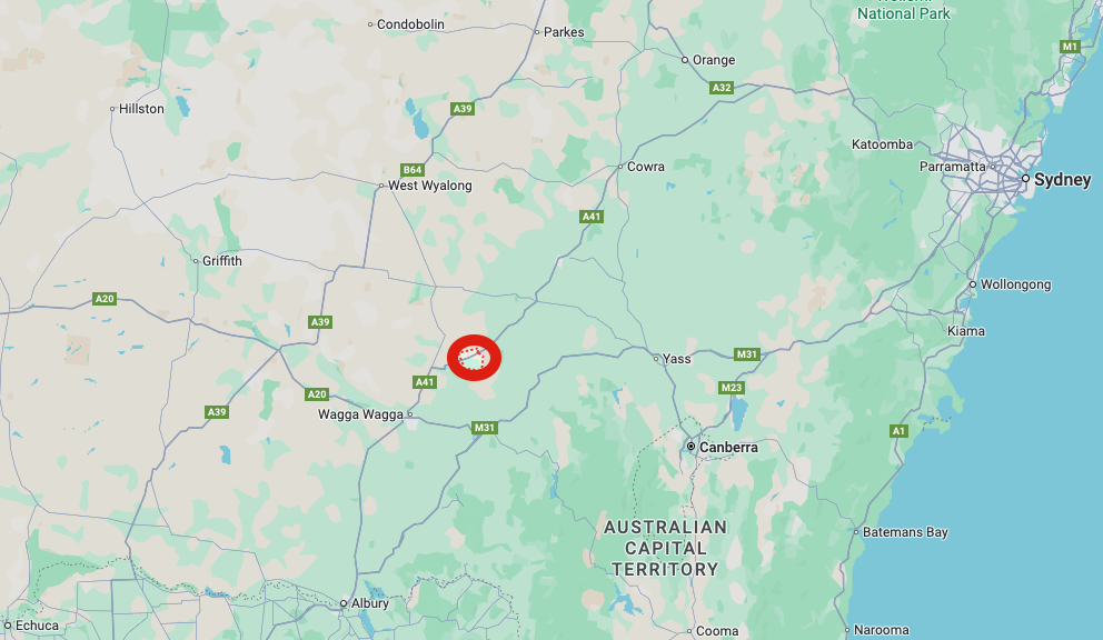 Above: Map showing the location of Junee, NSW. Map c/o Google Maps