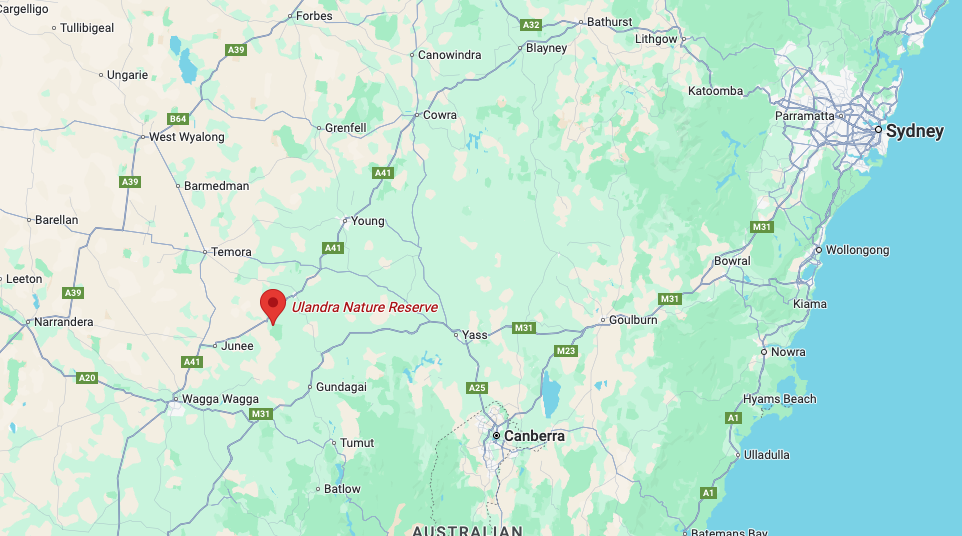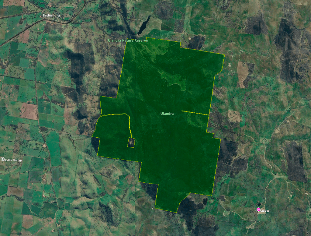 Above: an aerial view of the Ulandra Nature Reserve. Image c/o Google Maps