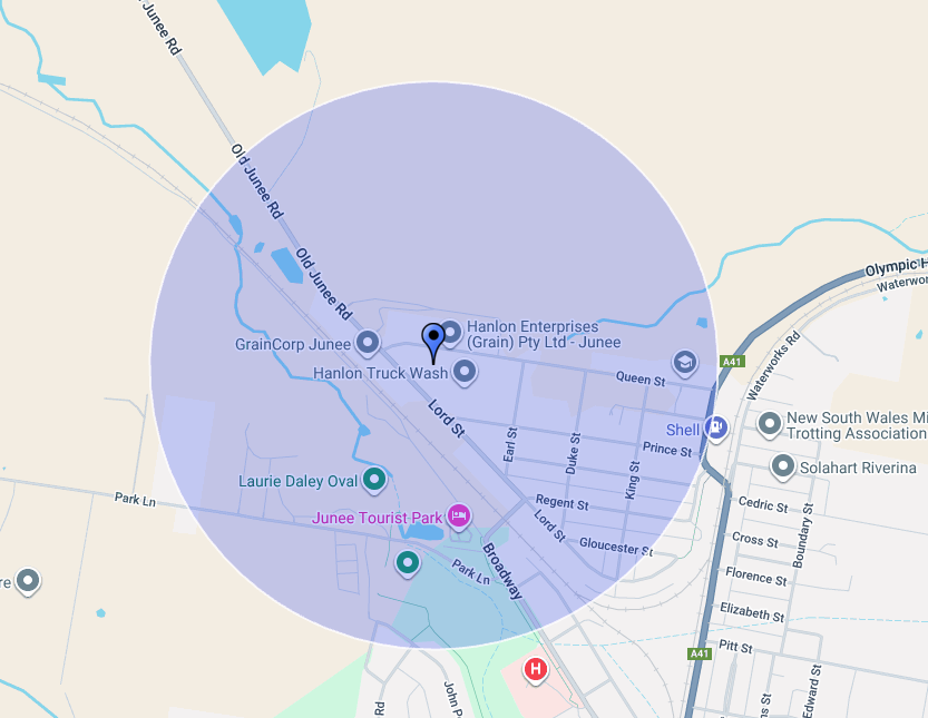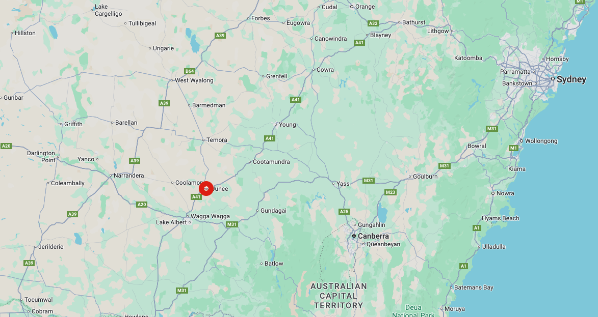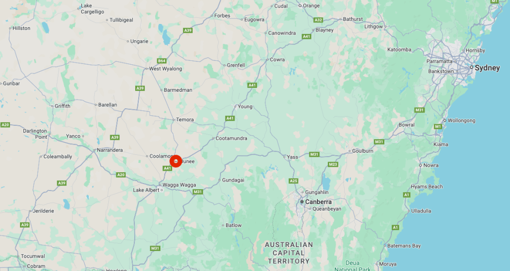 Above: Map showing the location of Junee, NSW. Map c/o Google Maps