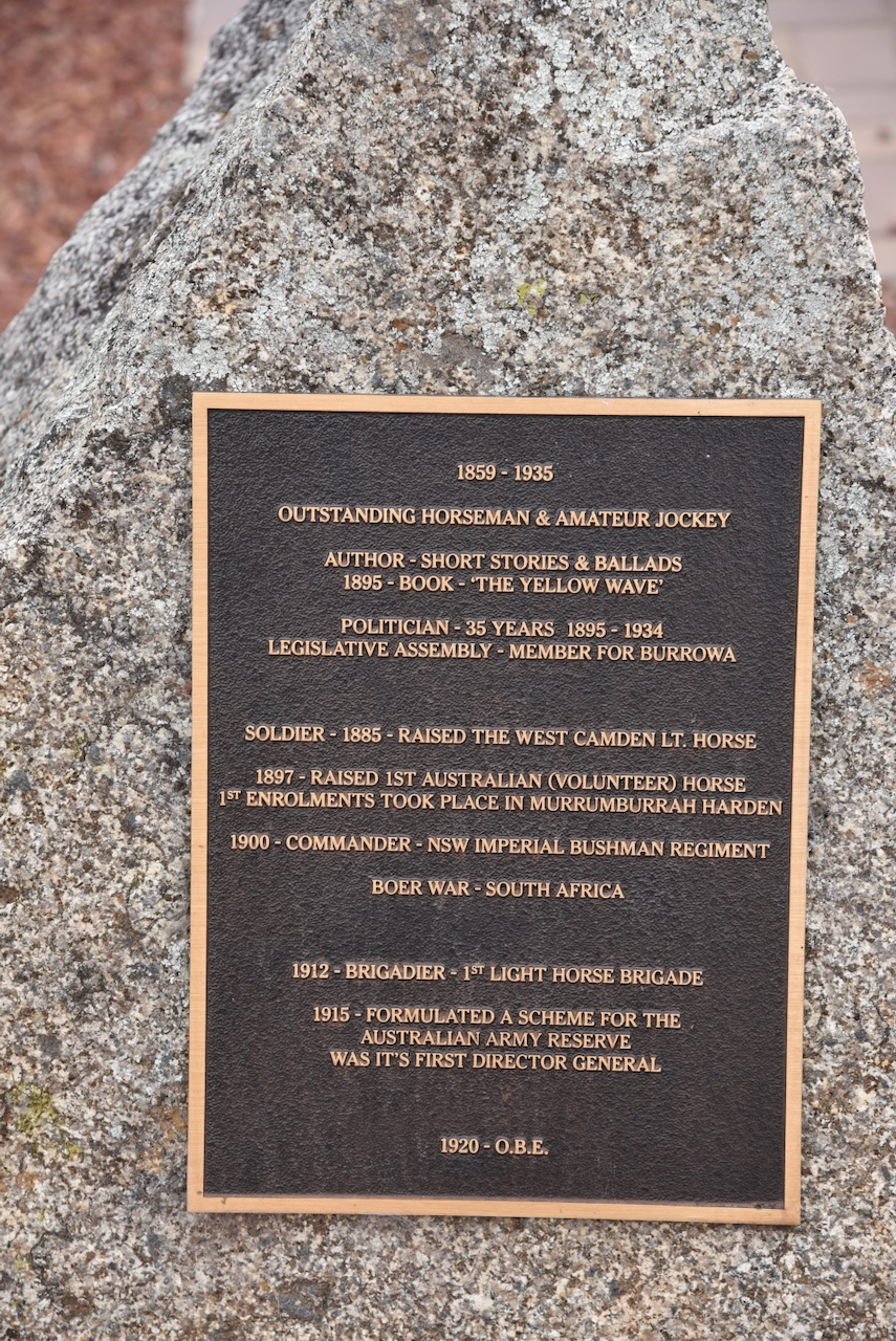 The Light Horse Memorial commemorates the birthplace of the First Australian Light Horse at Murrumburrah in 1897.