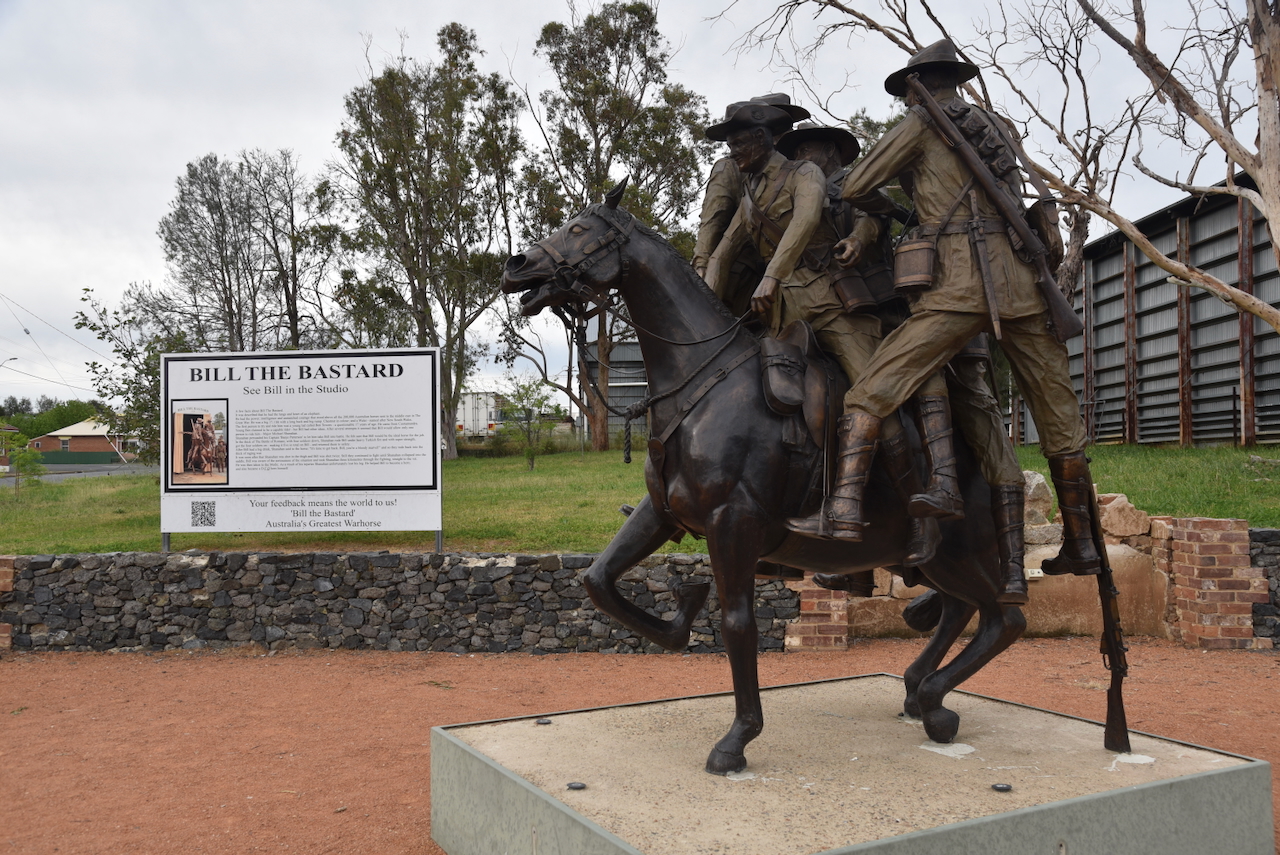 Harden is home to the life-size sculpture of Australia’s best-known war horse, ‘Bill the Bastard’. Bill was a 730 kg chestnut stallion, one of 130,000 Australian horses that served during the First World War. However, Bill was no average horse. He was described as having the lungs and heart of an elephant.