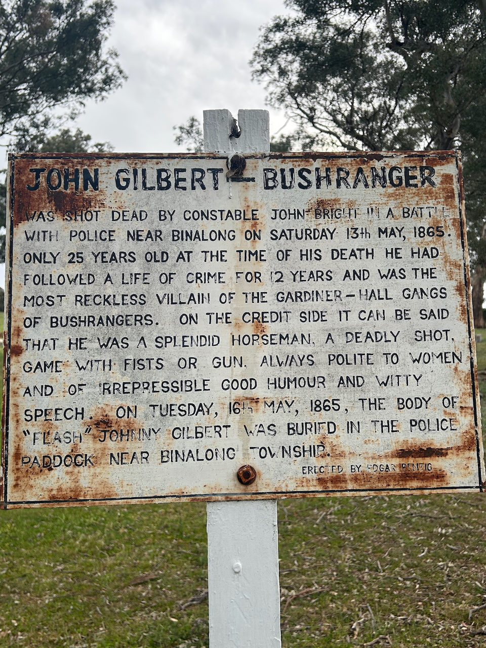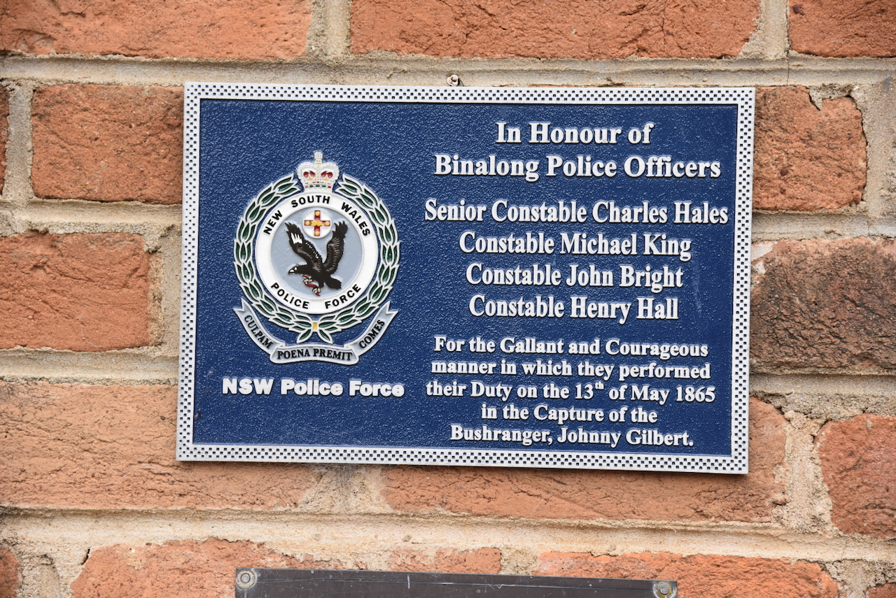 There is also a monument in honour of Senior Constable Charles Hales, Constable Michael King, Constable John Bright, and Constable Henry Hall, for the gallant and courageous manner in which they performed their duty on the 13th day of May 1865 in the capture of Gilbert.